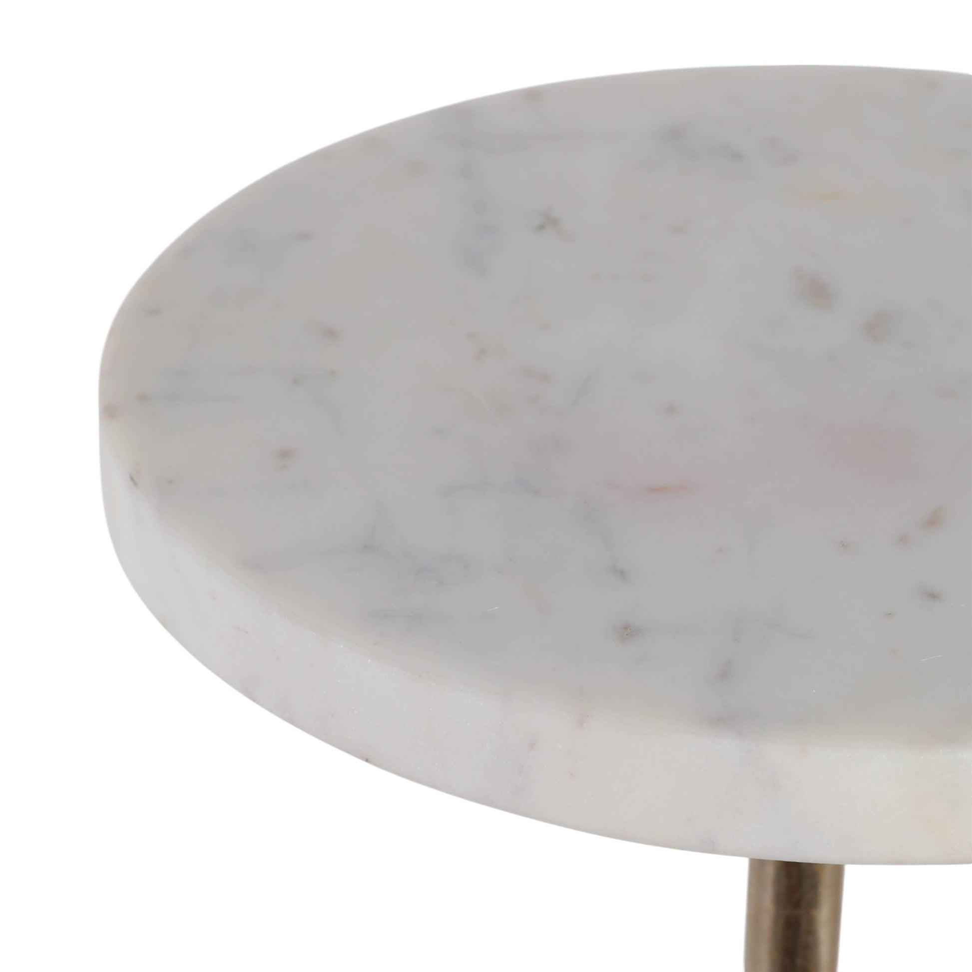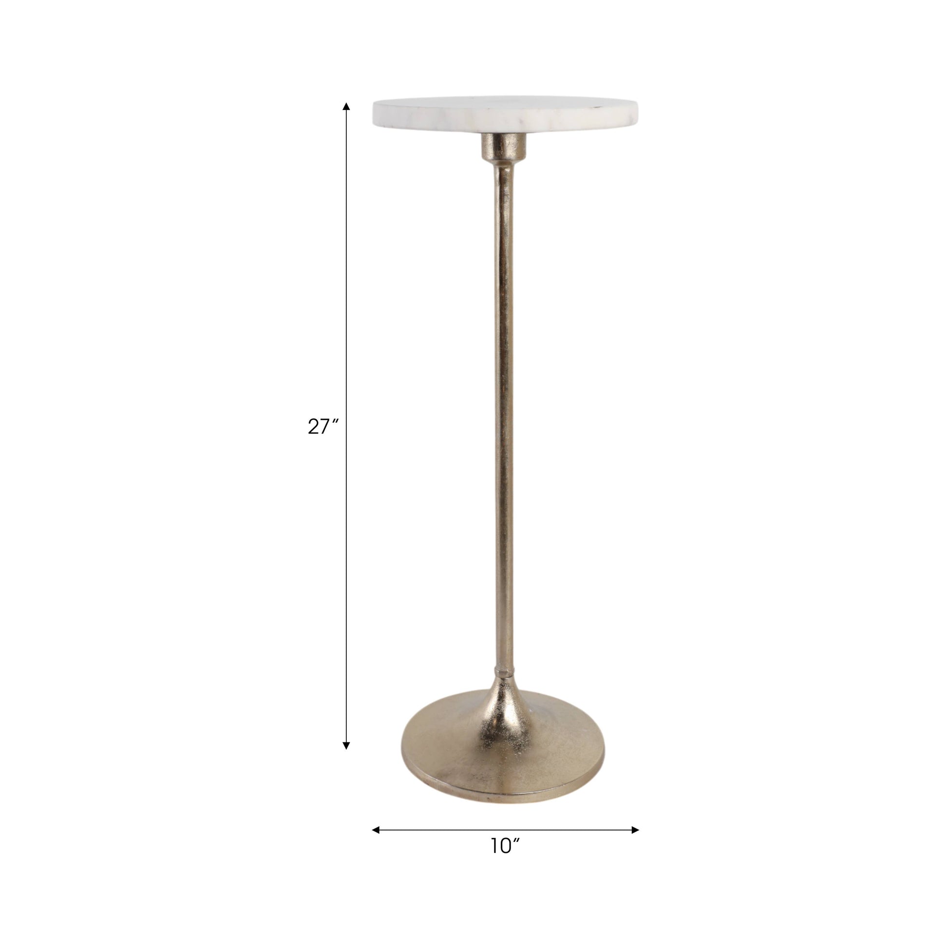 27X10" Marble Top Drink Table, White/Gold, Novelty, 27"H,