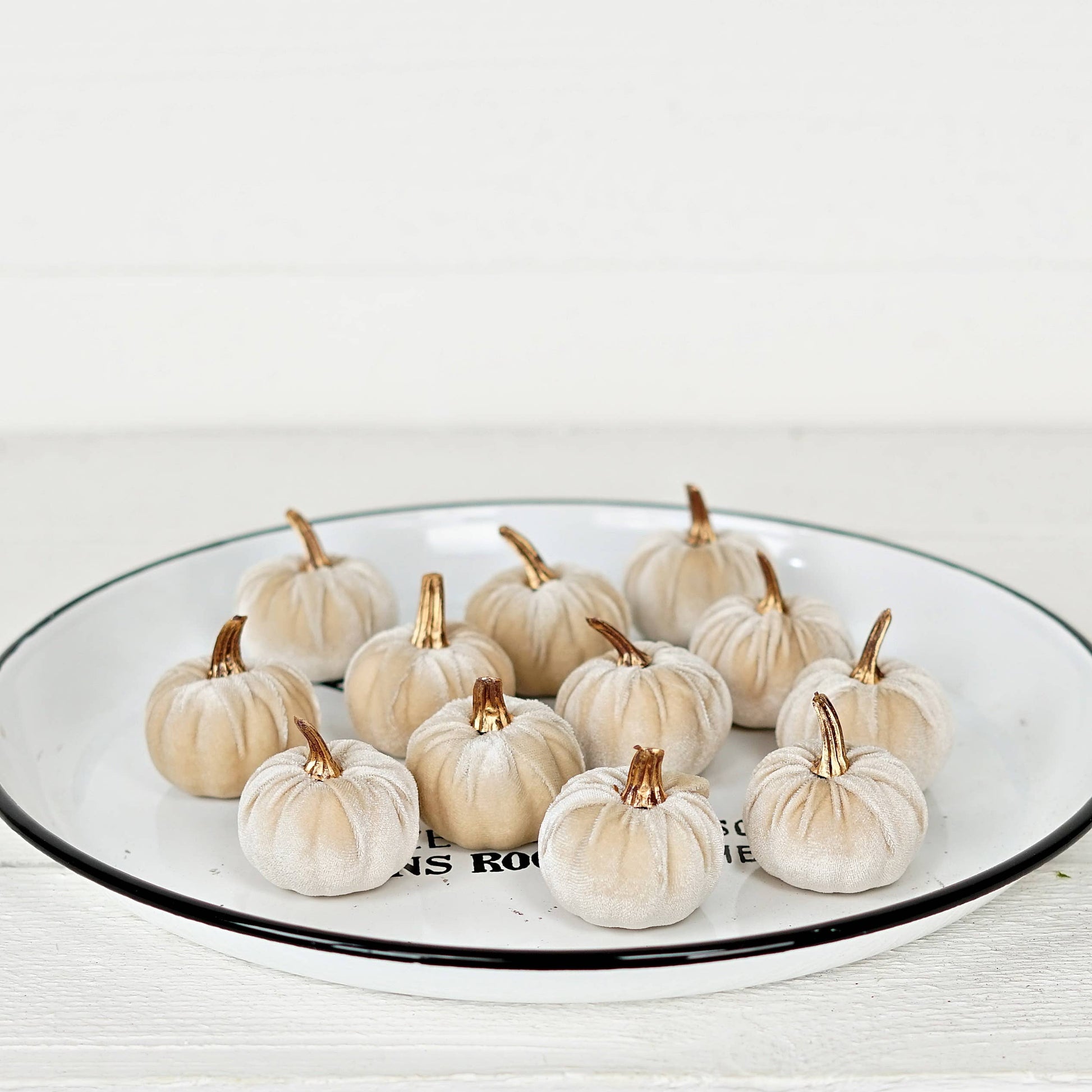 31343- Bag of 6 velvet 2in pumpkins with gold stem