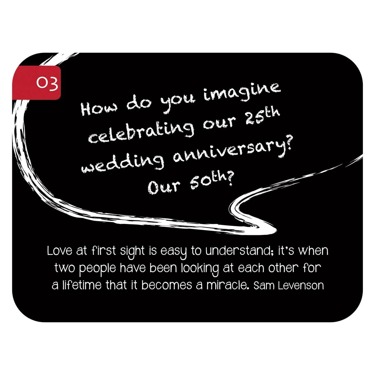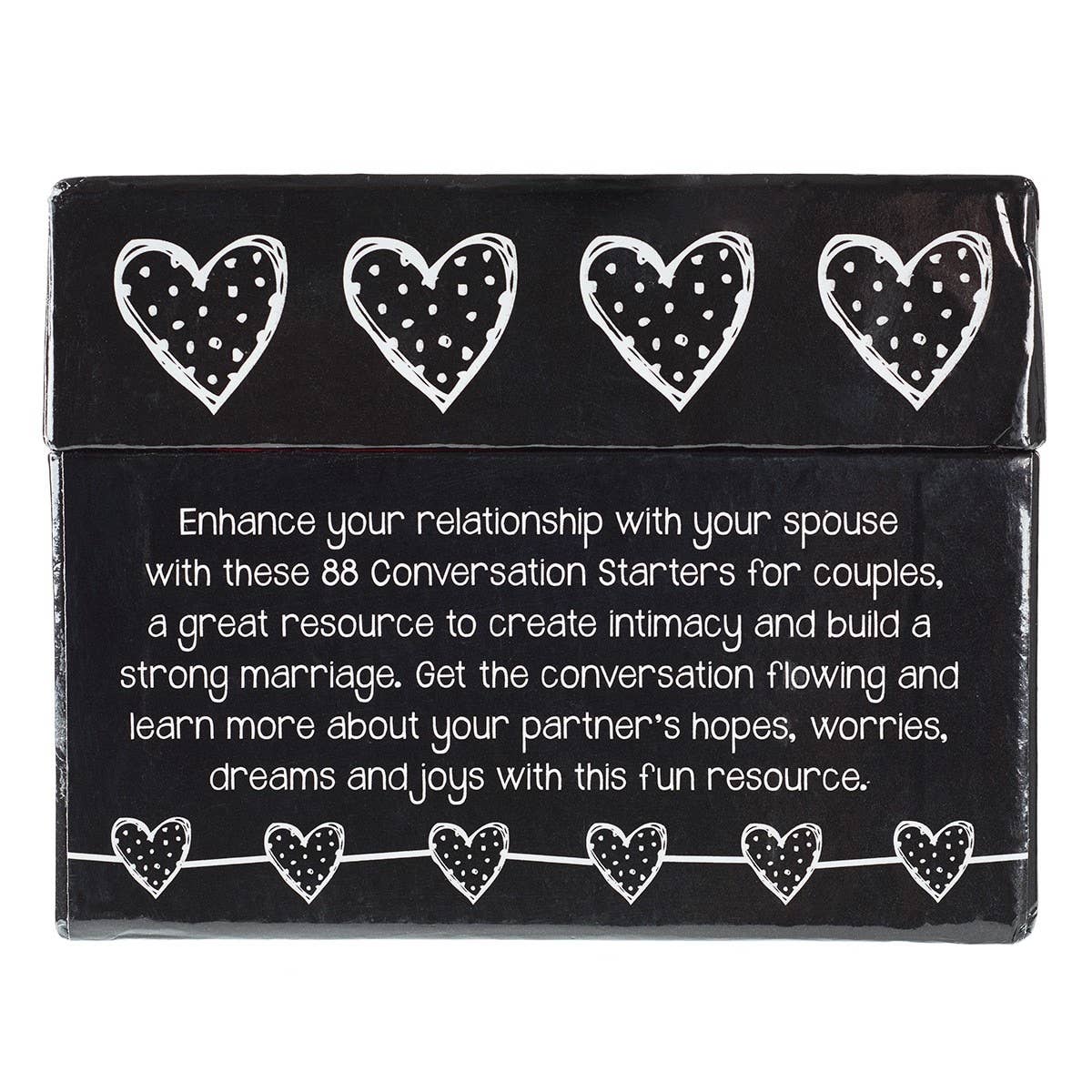 Conversation starters by Rob Teigen is a fun way couples can get to know one another better. Each card has a question and an accompanying Scripture verse or quote that is sure to spark some lively conversation and lots of laughter.
