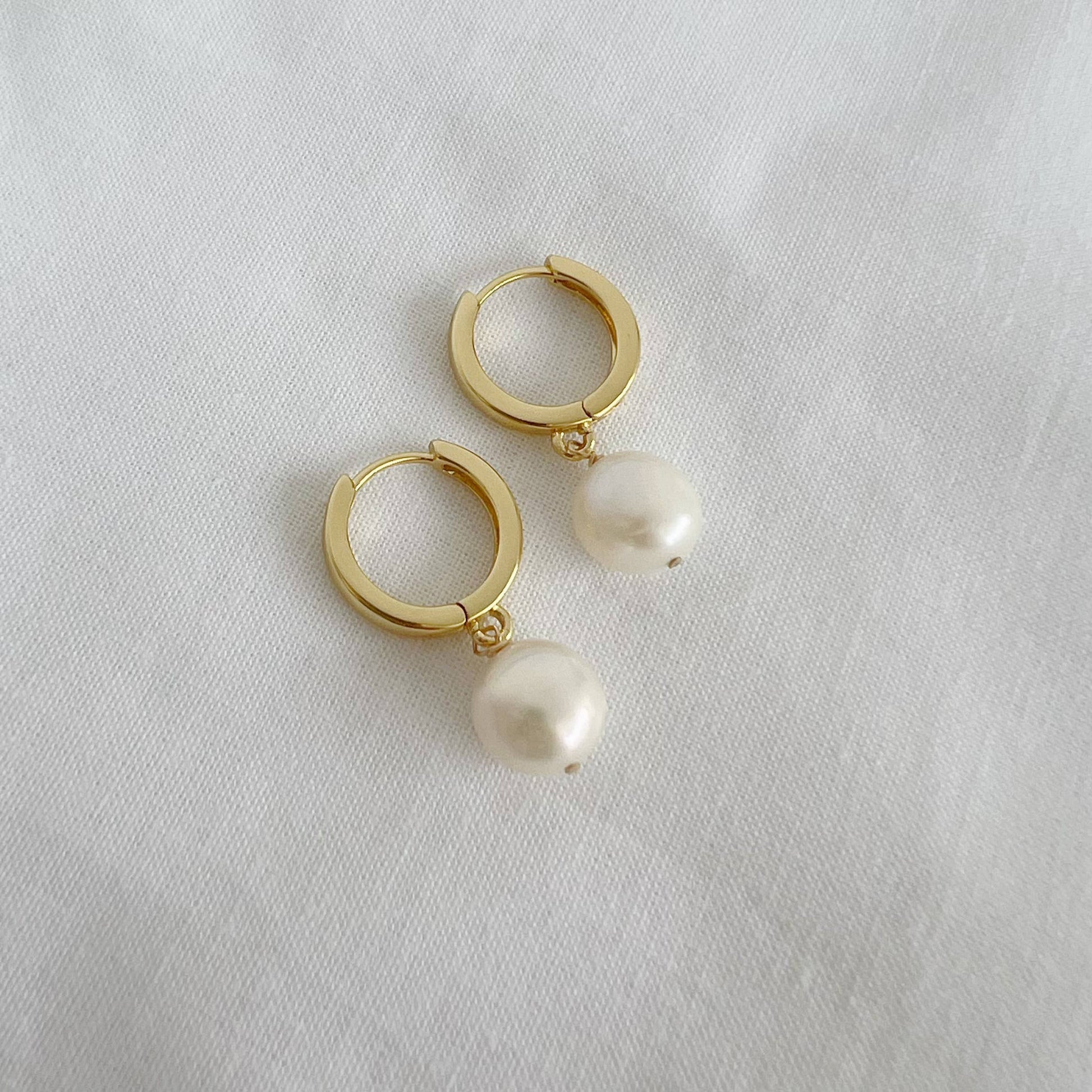 Addison Freshwater Pearl Huggie Hoops Earrings Gold Filled