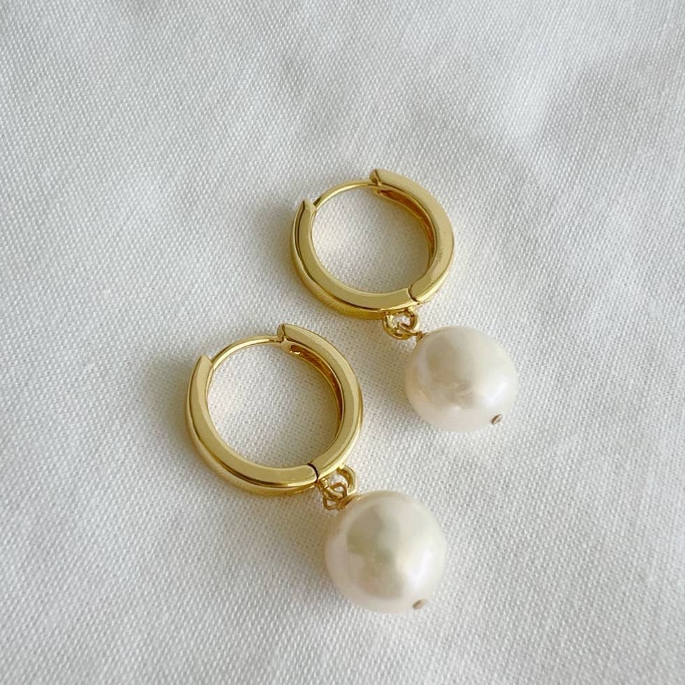 Gold filled huggie style hoops and natural freshwater pearls. Lightweight. - 15mm hoops + 8-9mm freshwater pearls - Approx 1” - Gold filled hoops - Click-in closure - Lead & nickel free - Hypoallergenic - Each natural pearl is unique and therefore no two are alike. Pearls, colors and sizes may vary. - Handmade with the highest standards & quality materials. This item is handmade, packaged and shipped with love