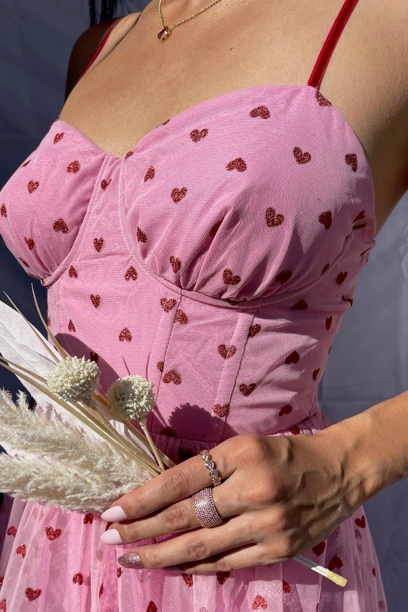 Cigar-style ring with pink pave cz and yellow gold vermeil.