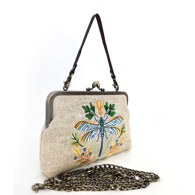Embrace the beauty of nature with the Dragonfly Vintage Kisslock Bag, an elegant accessory that captures the delicate and graceful charm of dragonflies. This bag blends nature-inspired design with vintage elegance, perfect for those who appreciate unique and eye-catching accessories.