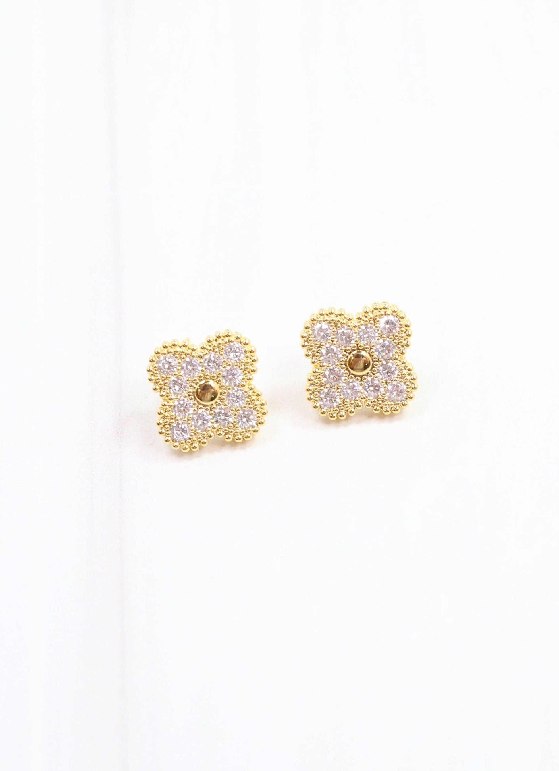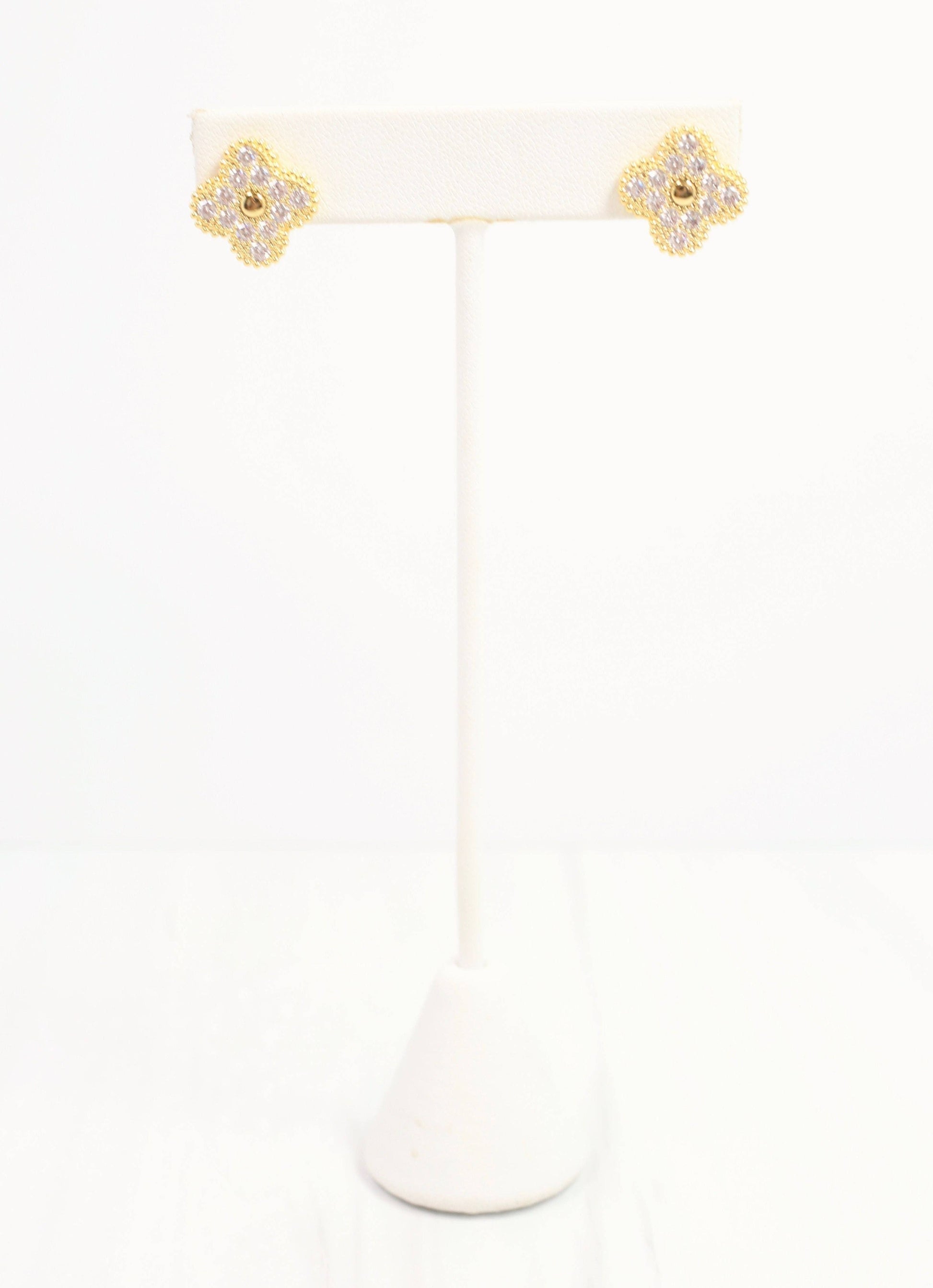 This stunning clover earring is filled with CZs and on a post back. Wear with a dressy or casual outfit for a subtle touch of sparkle.