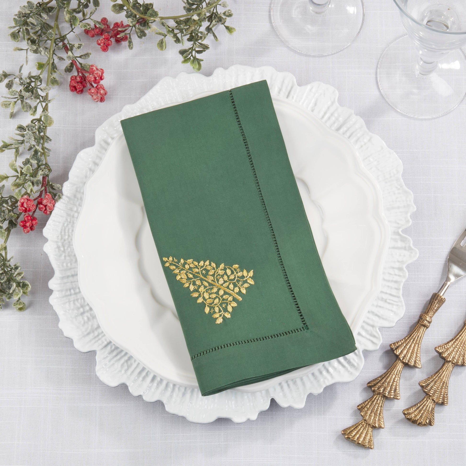 This set of Embroidered Christmas Tree Hemstitch Napkins adds an elegant finishing touch to your table. Perfect for both entertaining and everyday dining.