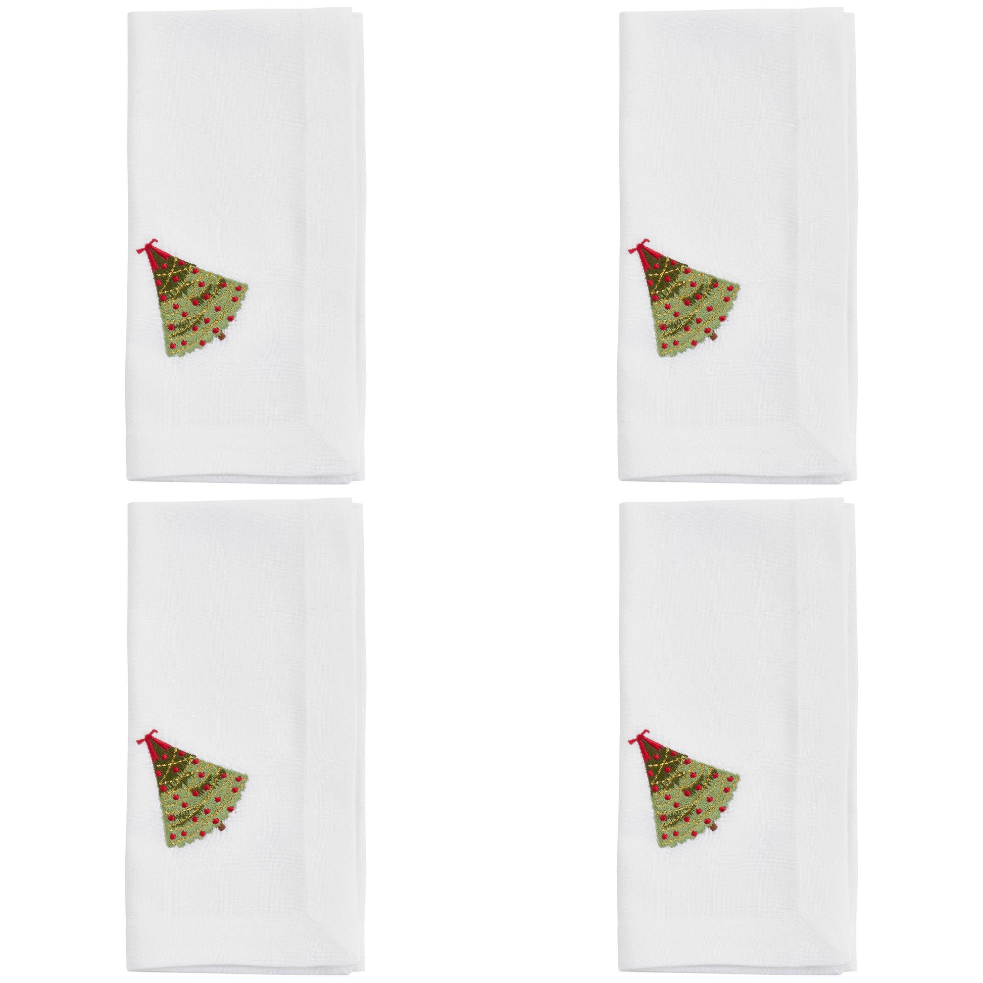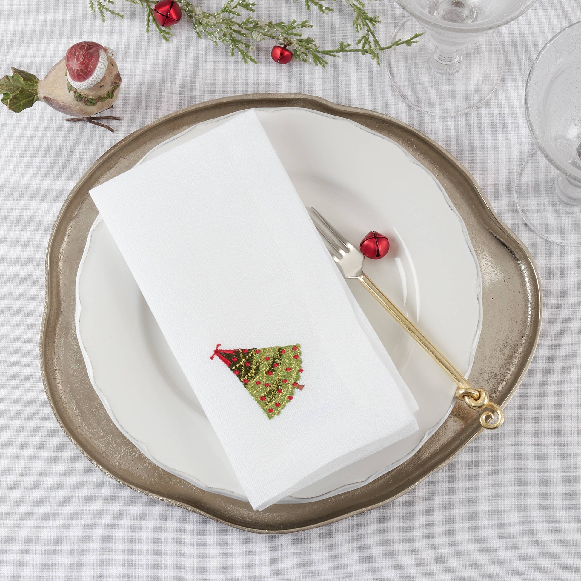 Colour and texture come together to create this beautiful set of Embroidered Christmas Tree Table Napkins. On a plain white background that resembles winter snow, the delicate embroidery of these napkins certainly stands out. It's the perfect setting for any occasion, from family gatherings to casual entertaining or special dinner parties.