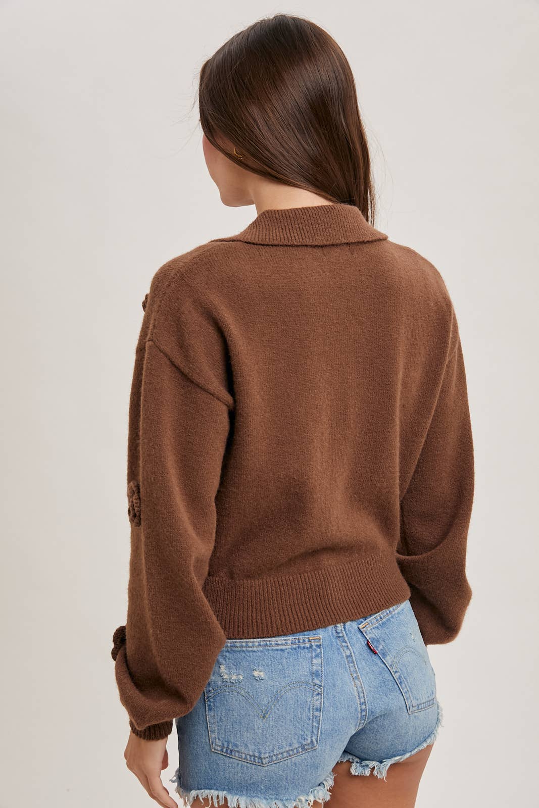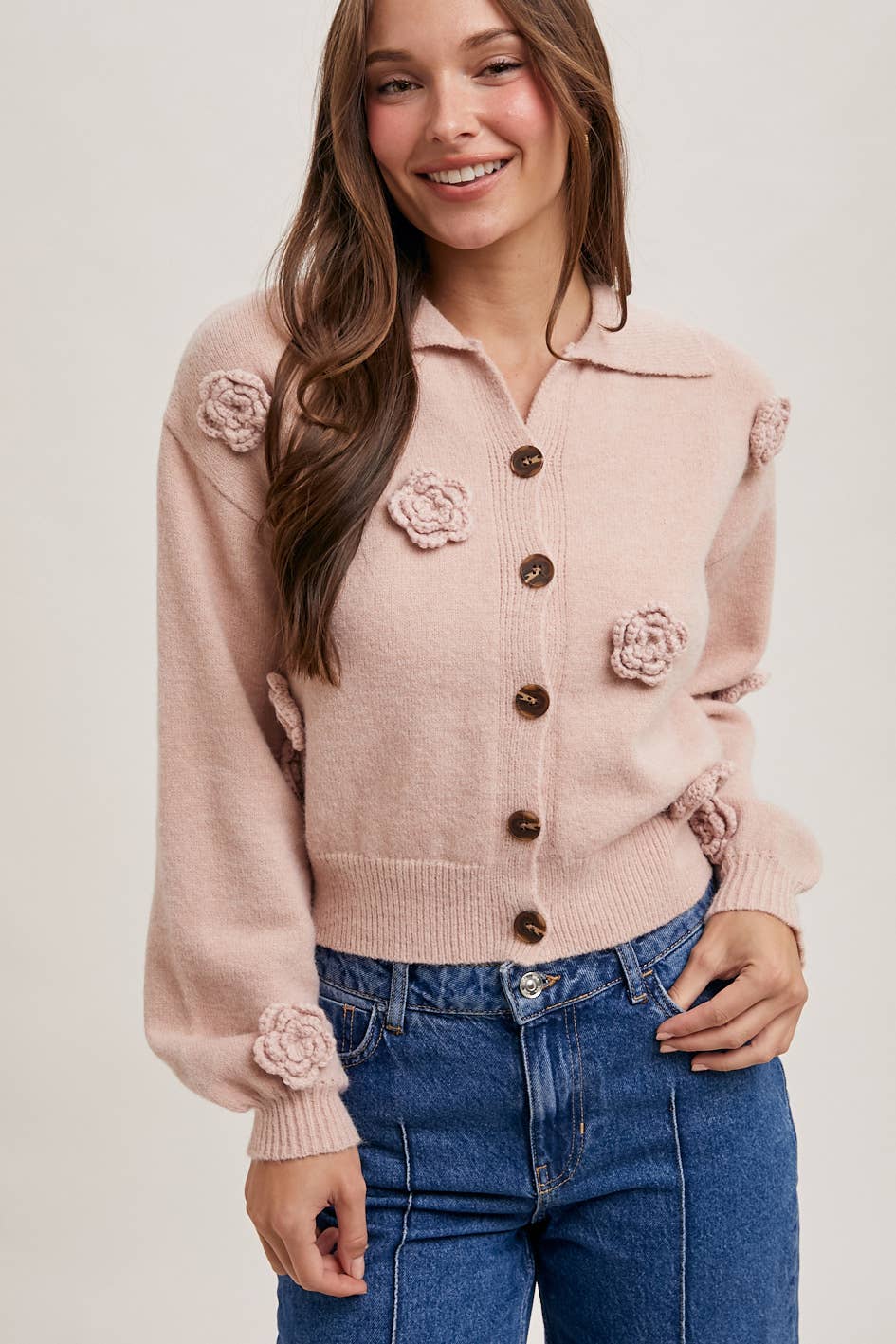 FLORAL EMBROIDERY BUTTON DOWN COLLAR KNIT CARDIGAN