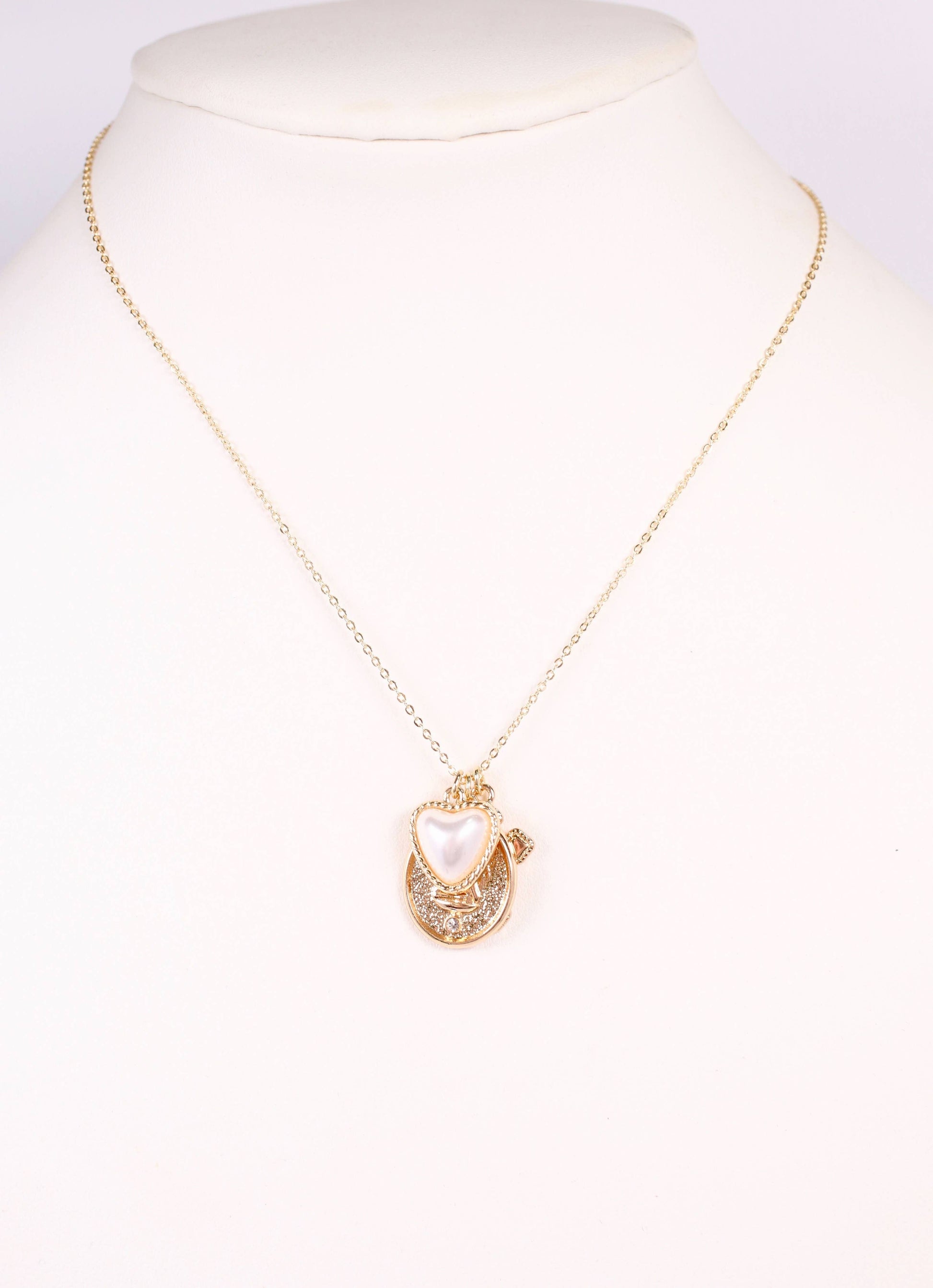 This thin chain necklace features a cluster of beautiful charms. It's the perfect piece to complete your next outfit.