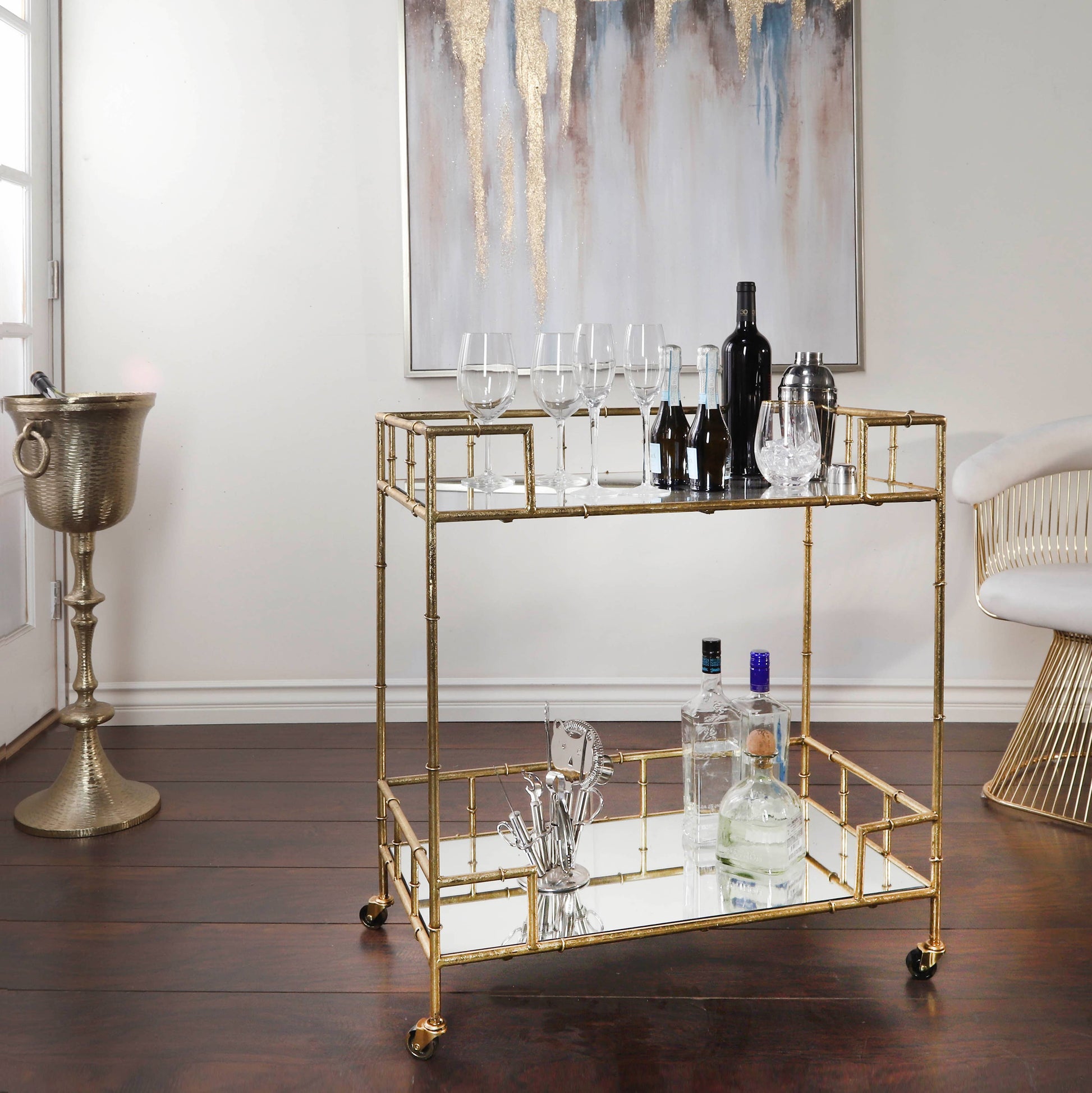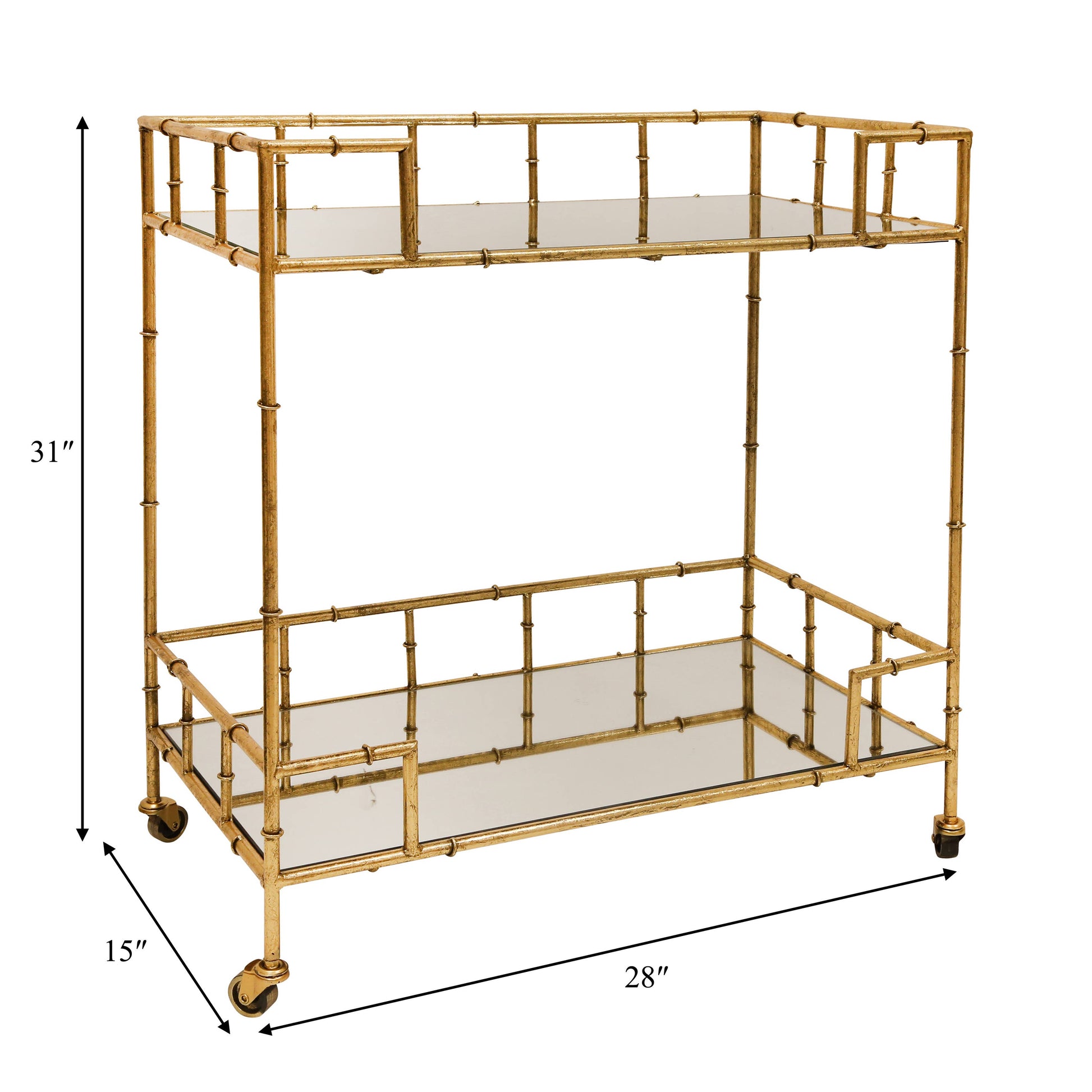 Gold 31x28 in. Metal Mirrored Top 2-Tier Gold Metal Bar Cart