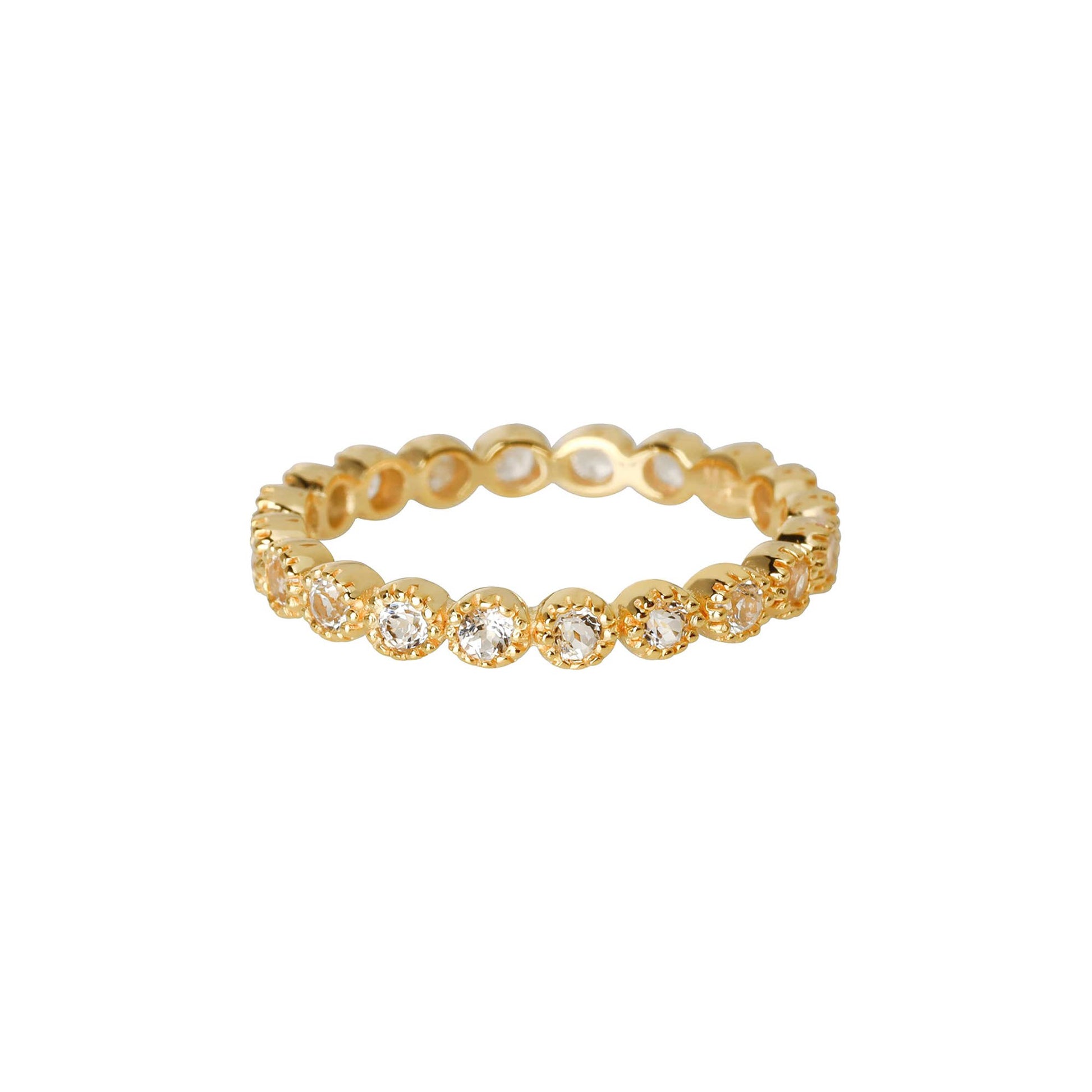 Celebrate timeless devotion with the Eternal Radiance Gold Eternity gold plated silver Band—a luminous circle of round-cut brilliance, each white topaz gemstone meticulously set in a seamless bezel embrace. Crafted in rich gold, this ring features a continuous row of clear stones that shimmer with every movement, symbolizing love without end. The repeating circular mounts evoke harmony and balance, making it a perfect choice for weddings, anniversaries, or personal milestones. Whether worn alone or stacked, its elegant silhouette and enduring sparkle offer a refined statement of commitment and grace. Designed for those who cherish beauty with meaning, this piece is more than jewelry—it’s a promise cast in gold.