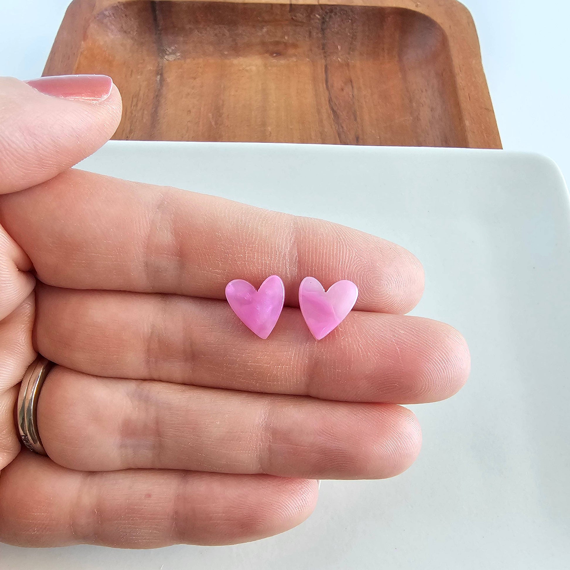 Keep love close with our Hand Drawn Heart Stud Earrings! Featuring delicate, hand-drawn heart shapes crafted from plant-based acrylic, these studs are perfect for adding a subtle, charming touch to any outfit. Lightweight and versatile, they’re a must-have for heart lovers and anyone who loves a little everyday charm. ✨ Details: * Hypoallergenic stainless steel posts * Lightweight and durable plant-based acetate acrylic * Approximately 0.4" Style tip: Pair with a soft sweater, jeans, and a simple ponytail for an effortlessly sweet, everyday look. *Size depicted in modeled photos (shown in Red).