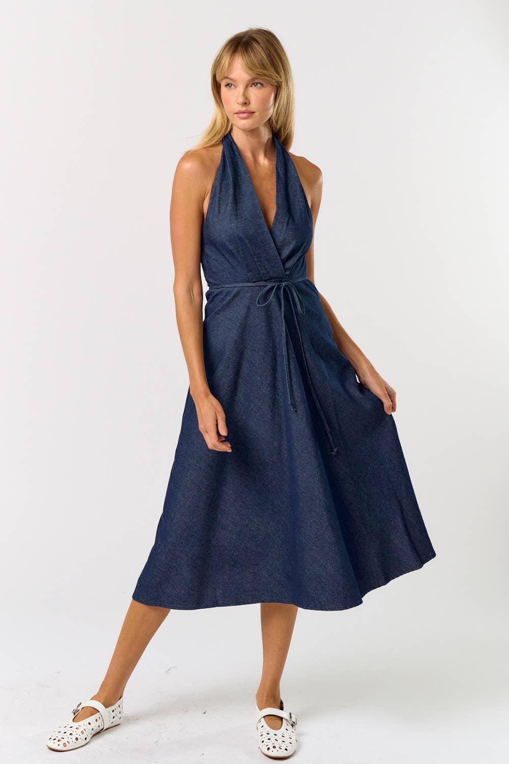 ILD5158 HALTER NECK DENIM MAXI DRESS