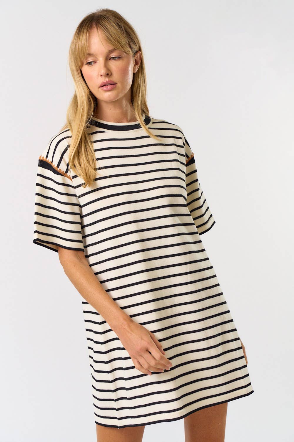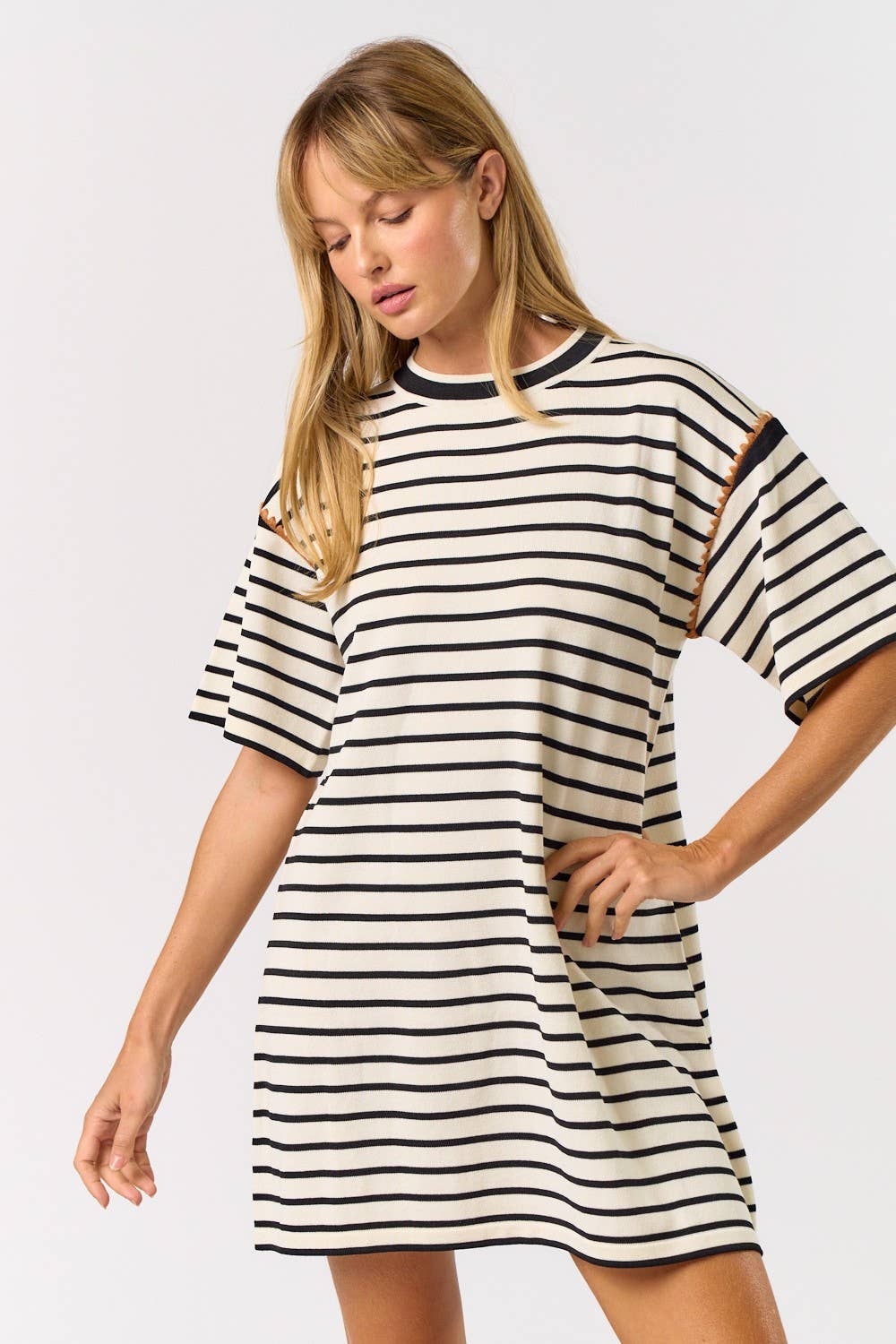 SPECIAL - STRIPE SHORT SLEEVE SHIRT DRESS I M