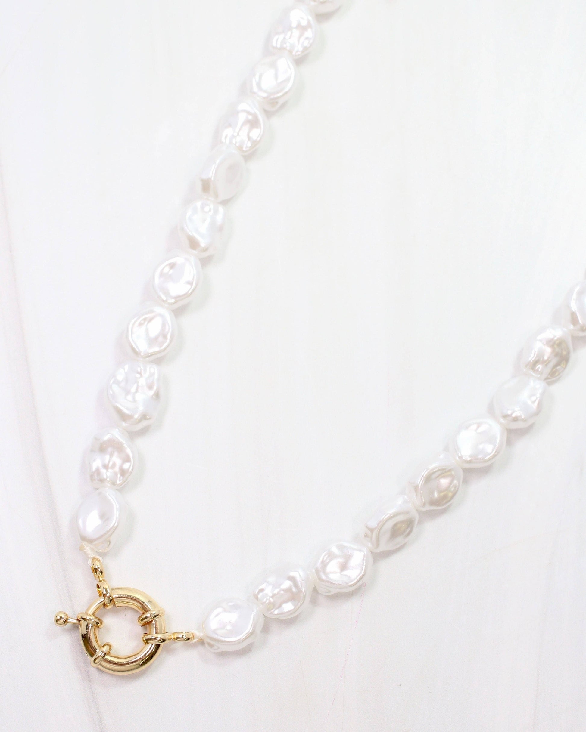 Elevate any outfit with the Juliet Baroque Pearl Necklace. Its stunning natural-looking pearls and versatile gold toggle clasp can be worn in the front or back. Add a charm or pendant for a personal touch.