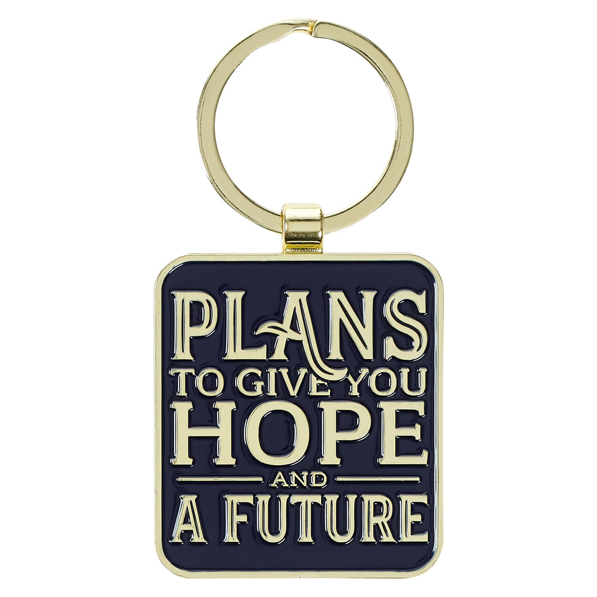 Encourage your graduating class to move forward with faith, understanding that their future is held in God's hands, by gifting them the Plans to Give You Hope Epoxy-coated Metal Keychain on graduation day.