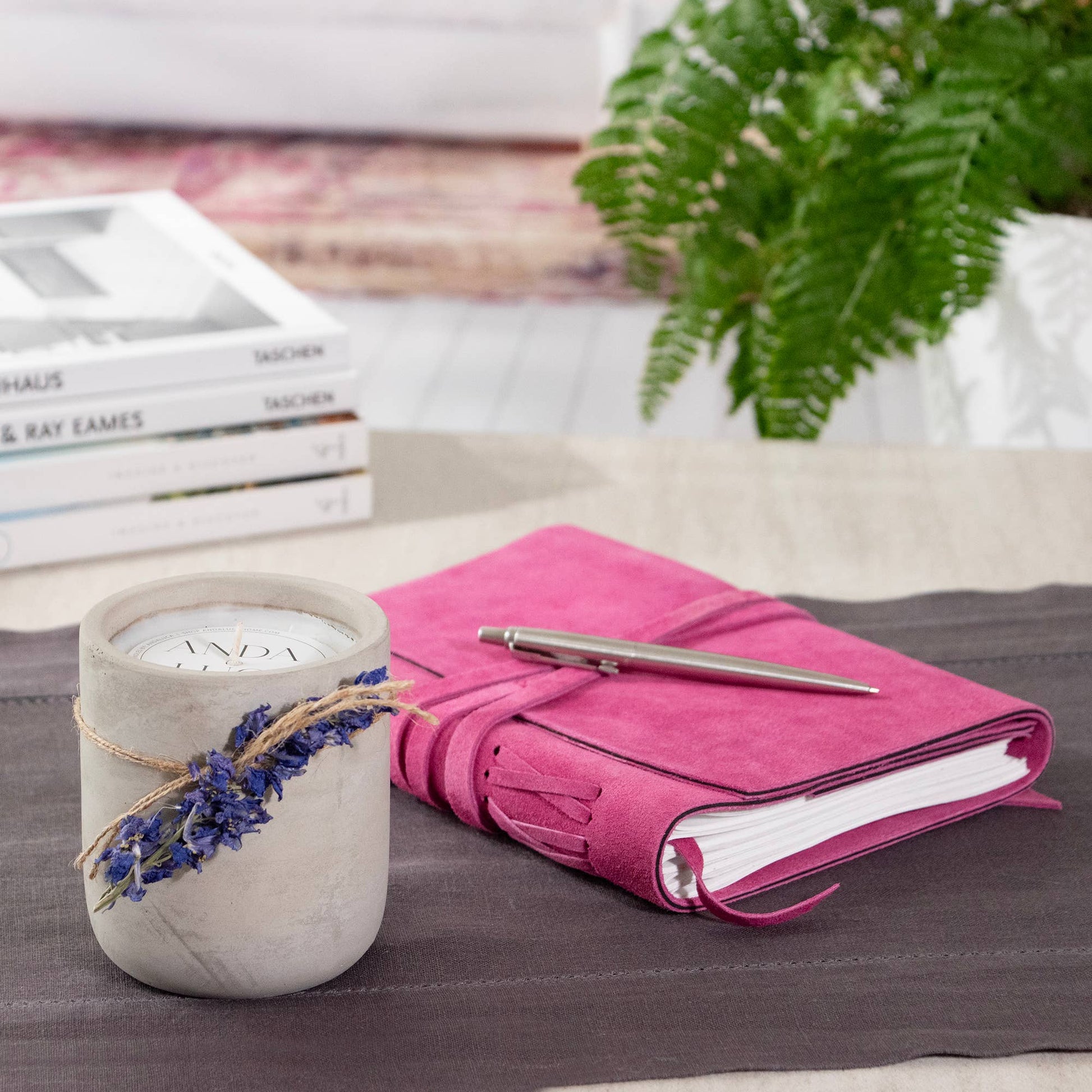 Both rustic and refined, our new collection of handmade cement candles are the perfect compliment to your space. Enjoy the fresh and earthy scents in this collection, and reuse the cement cup once the candle is finished. Each candle cup has a natural botanical flourish tied by hand.