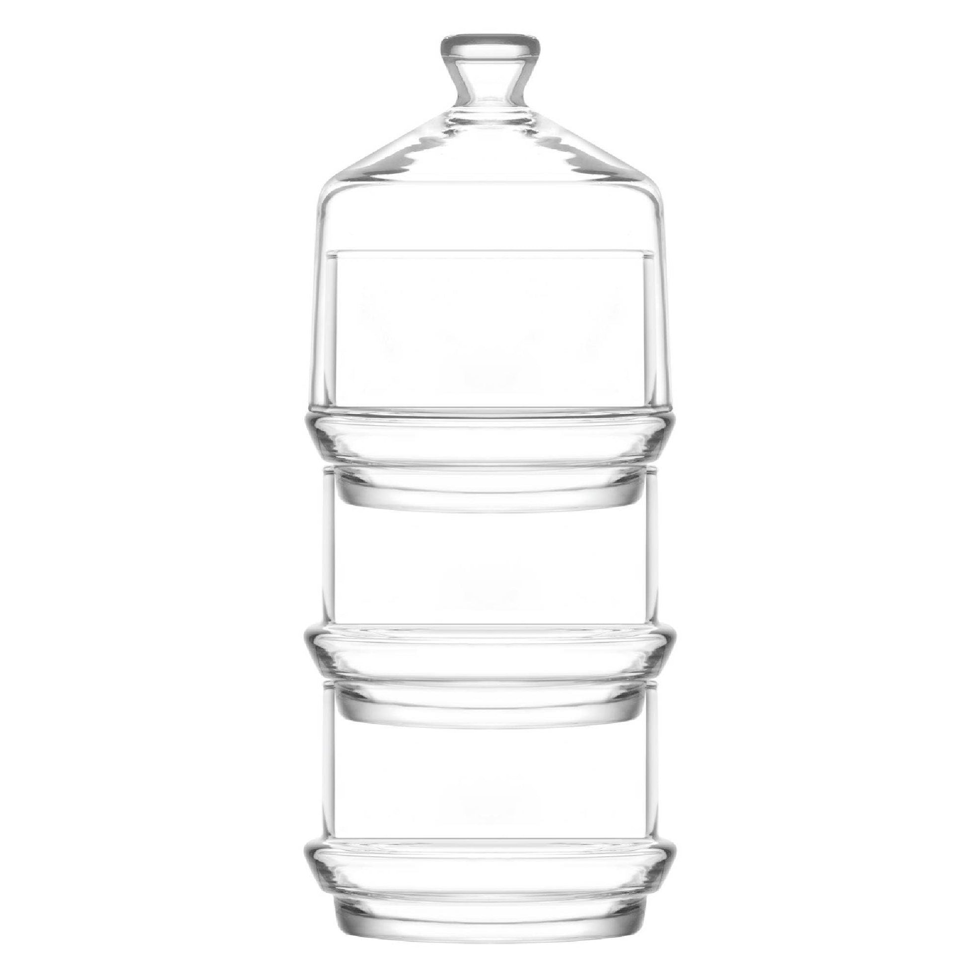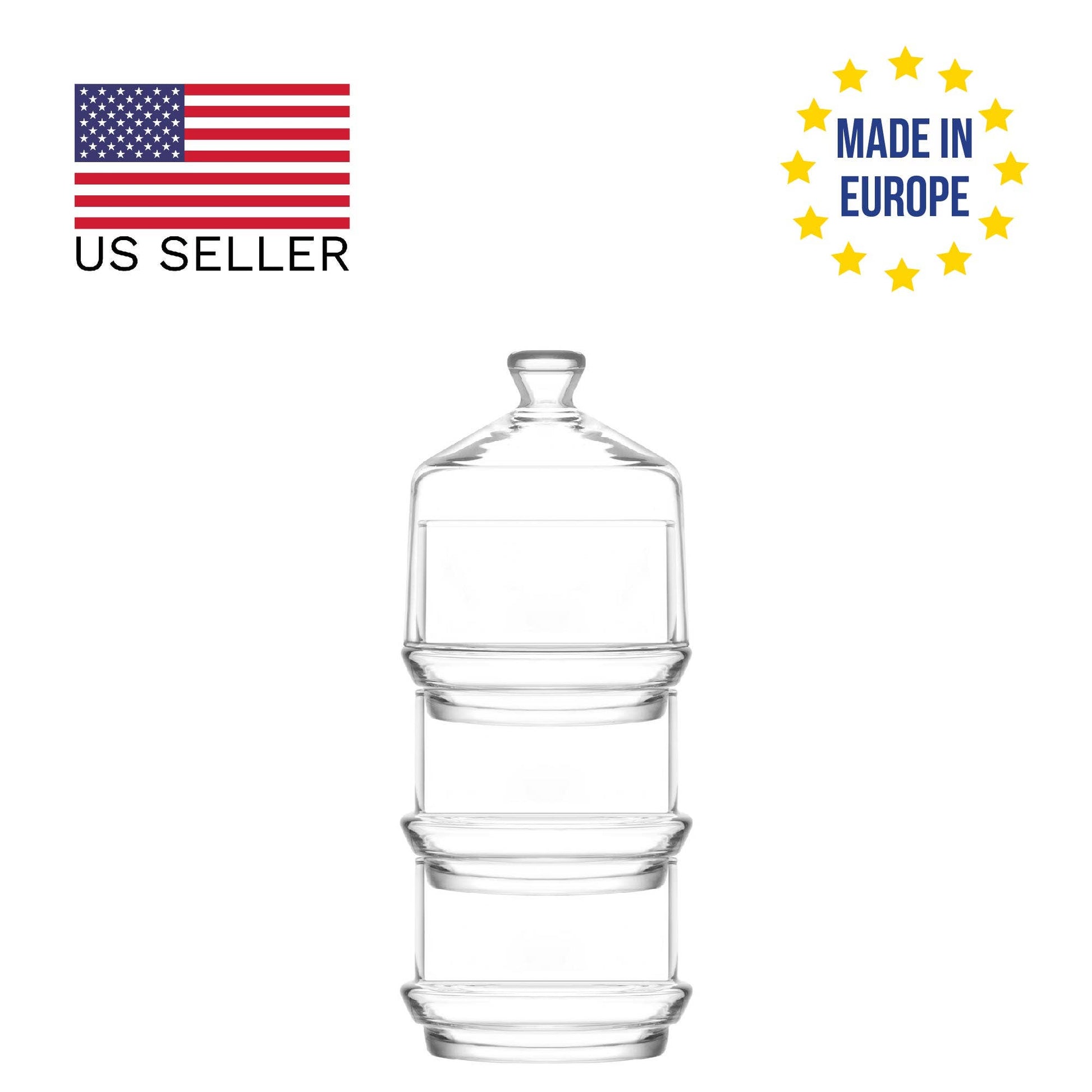 LAV FOOD SERVICE WITH COVER 25 7/8 oz . Versatile and Elegant Serving Solution: The transparent glass construction allows you to showcase colorful candies, nuts, or other treats, making it an ideal choice for parties and gatherings. Dome Lid for Freshness and Protection: The dishes come with dome lids that keep the contents fresh and safe from dust, insects, and contaminants, ensuring your food remains appealing for longer. Sophisticated Table Setting: Apart from its practicality, the covered serving dish set from LAV Berry adds a touch of elegance to your table, making it suitable for formal occasions or enhancing everyday meals' presentation.