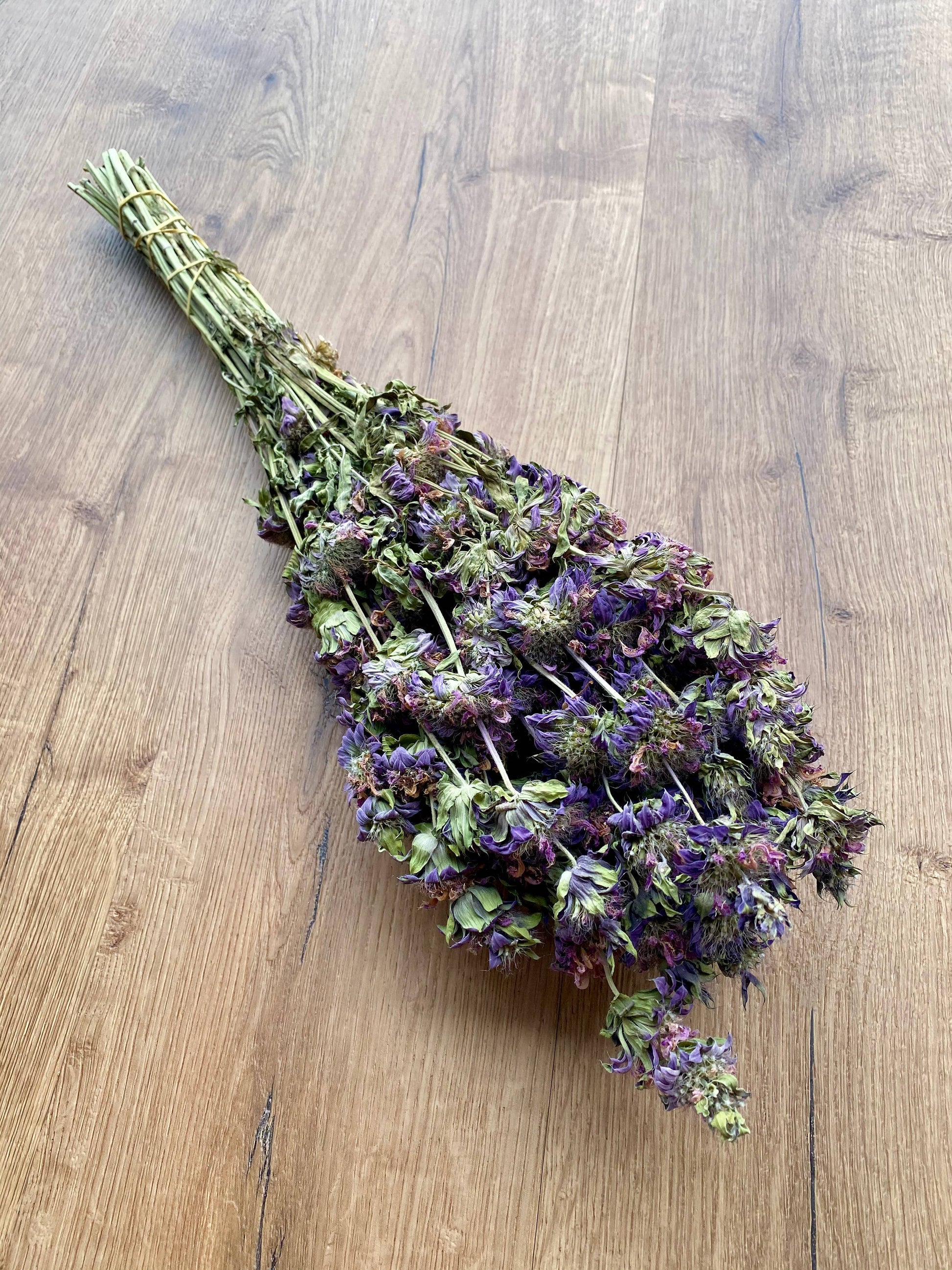 Lemon Mint features bushy bunches of long, green, spike stems supporting light, purple-pink blooms. The product emits a nice mild minty aroma. The Lemon Mint is dried using ambient air with no added preservatives or coloring. This item will retain the same color, appearance, and integrity dried as when fresh for several years particularly when displayed out of direct sunlight. This item is not promoted to be used for human or animal consumption.