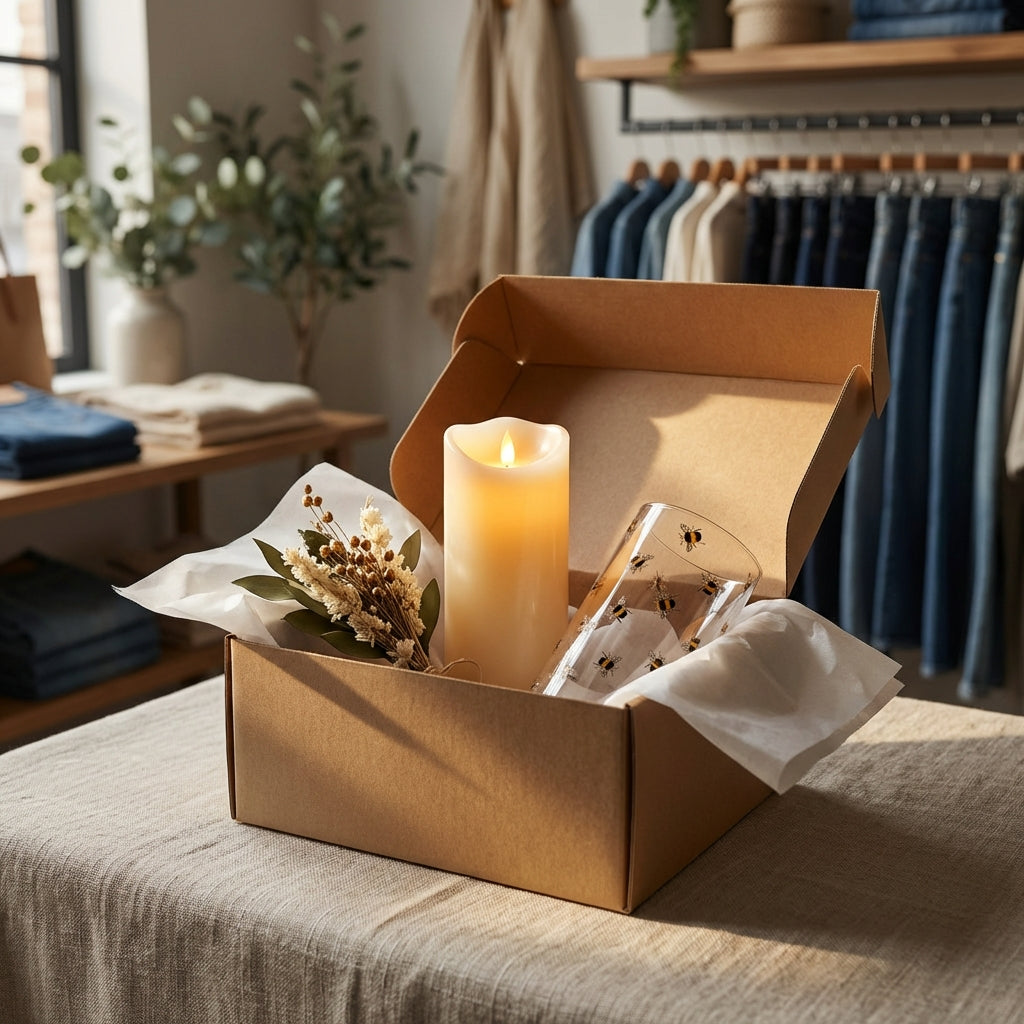 Our collections are intentionally curated to feel elevated and unique. While the overall composition and value of each collection remain consistent, select elements—such as waterfall candle color, decorative sleeve, or floral selections —may vary based on availability and seasonality. Each gift is assembled with care to ensure a refined and cohesive experience.
