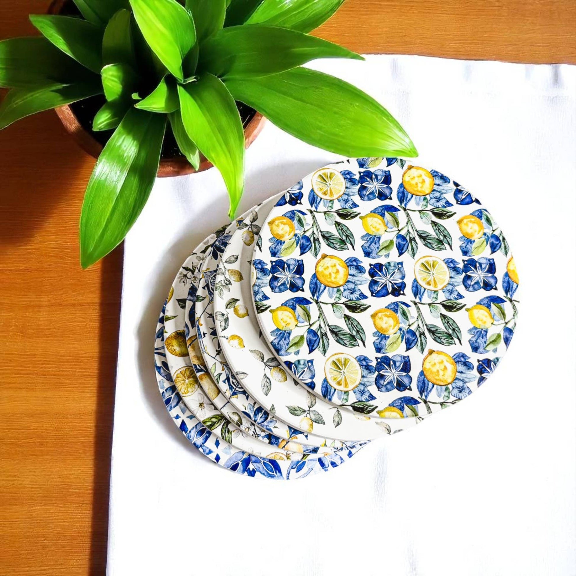 Mediterranean Lemon Coasters | Coastal Blue & Yellow Accents