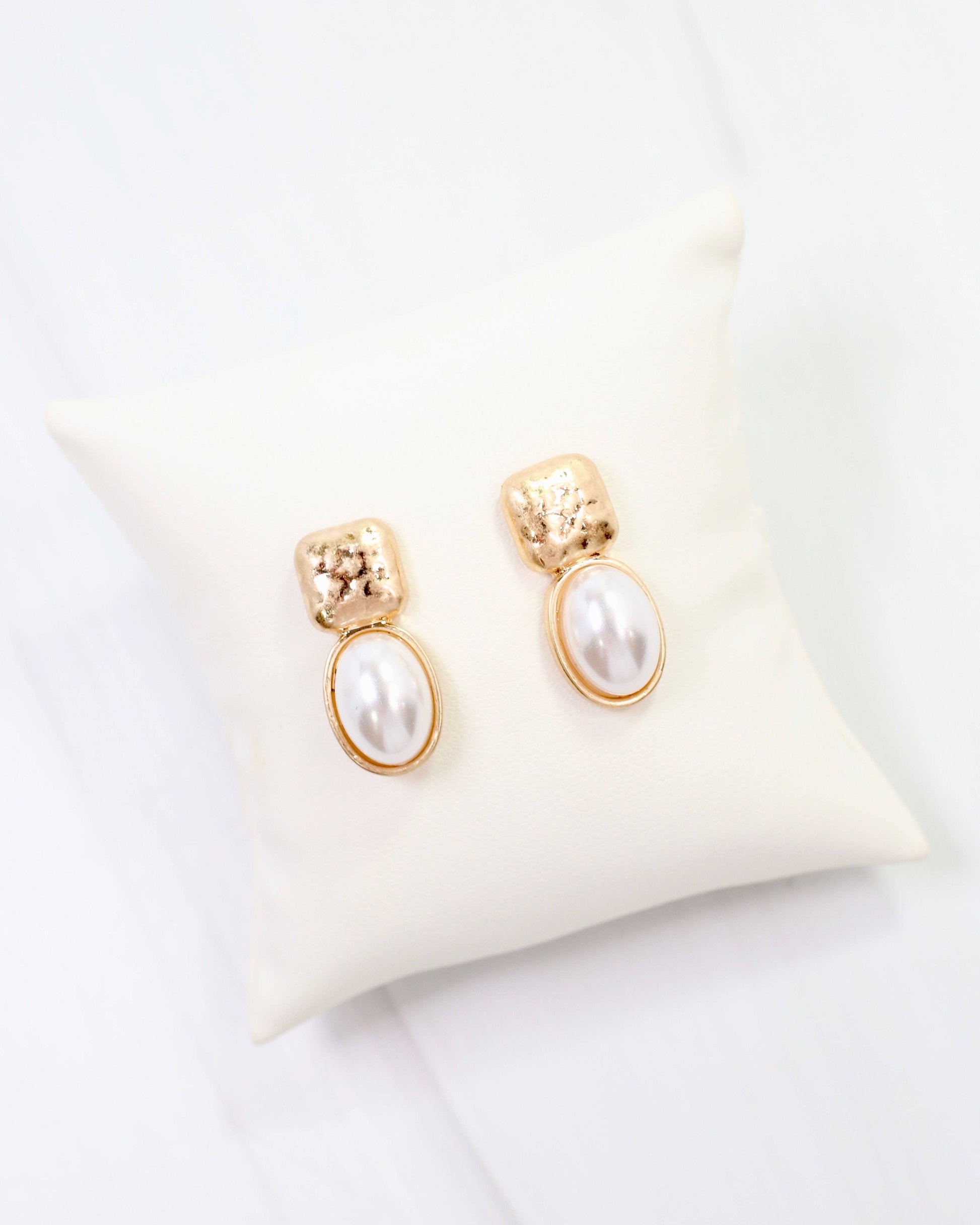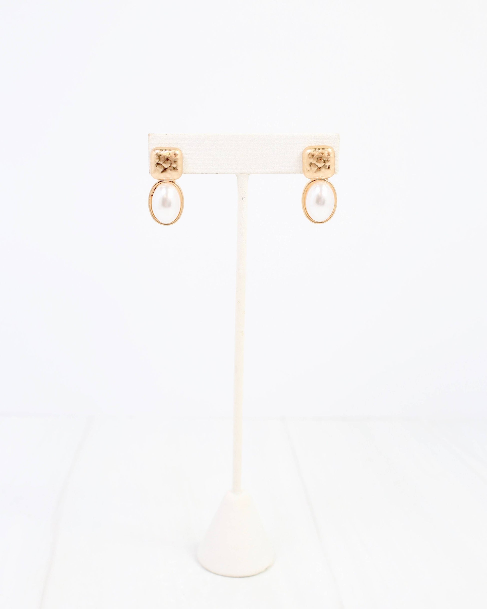 Mindy Textured Gold Drop Earring Pearl
