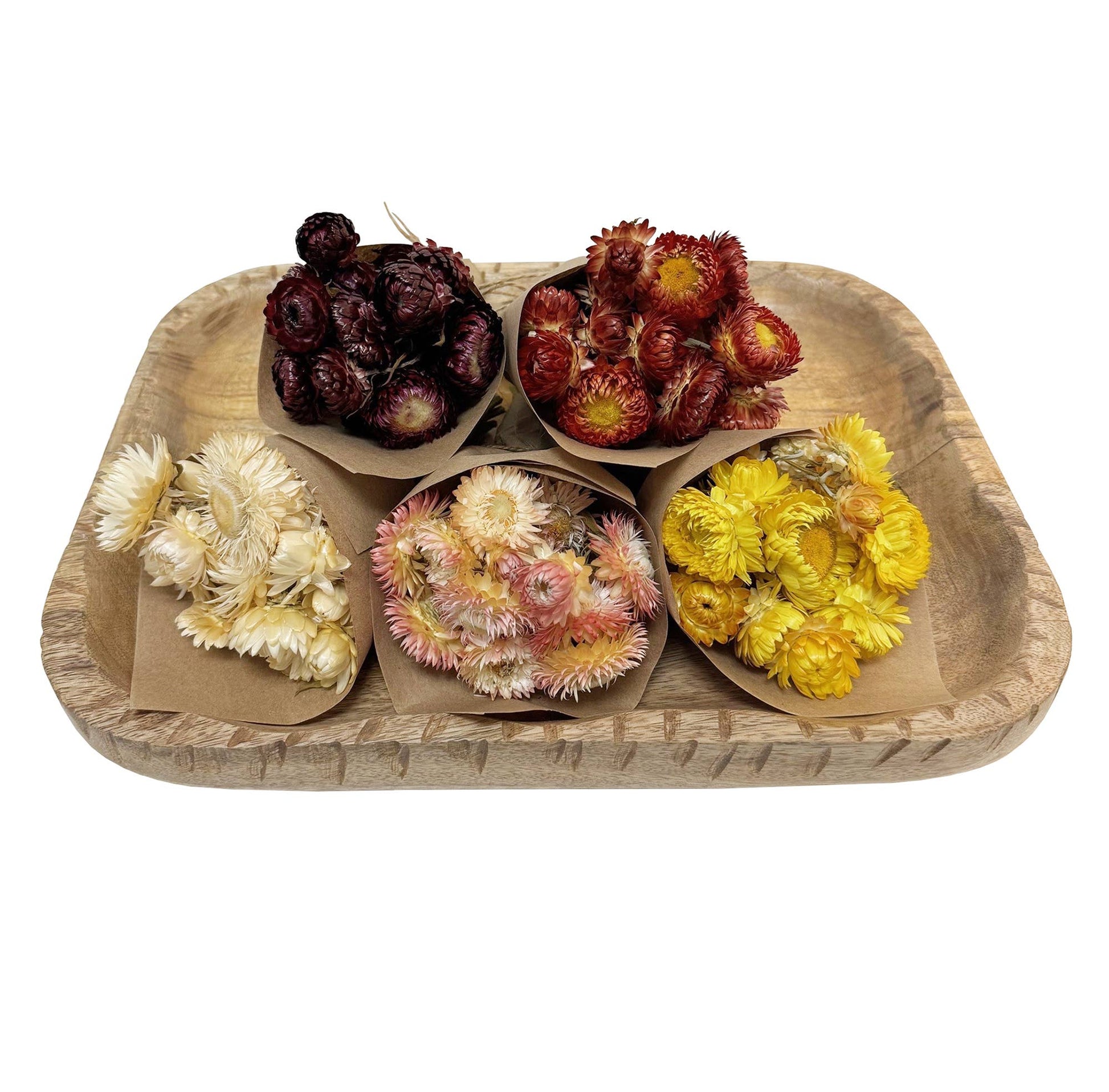 Our Mini Pink Strawflower Bundle is an adorable accent or gift for any occasion. Each mini bouquet is wrapped in a Kraft paper wrap and tied with a jute rope. This petite bundle is a perfect and lovely accent to your tablescape, decorative shelf, or mantle.