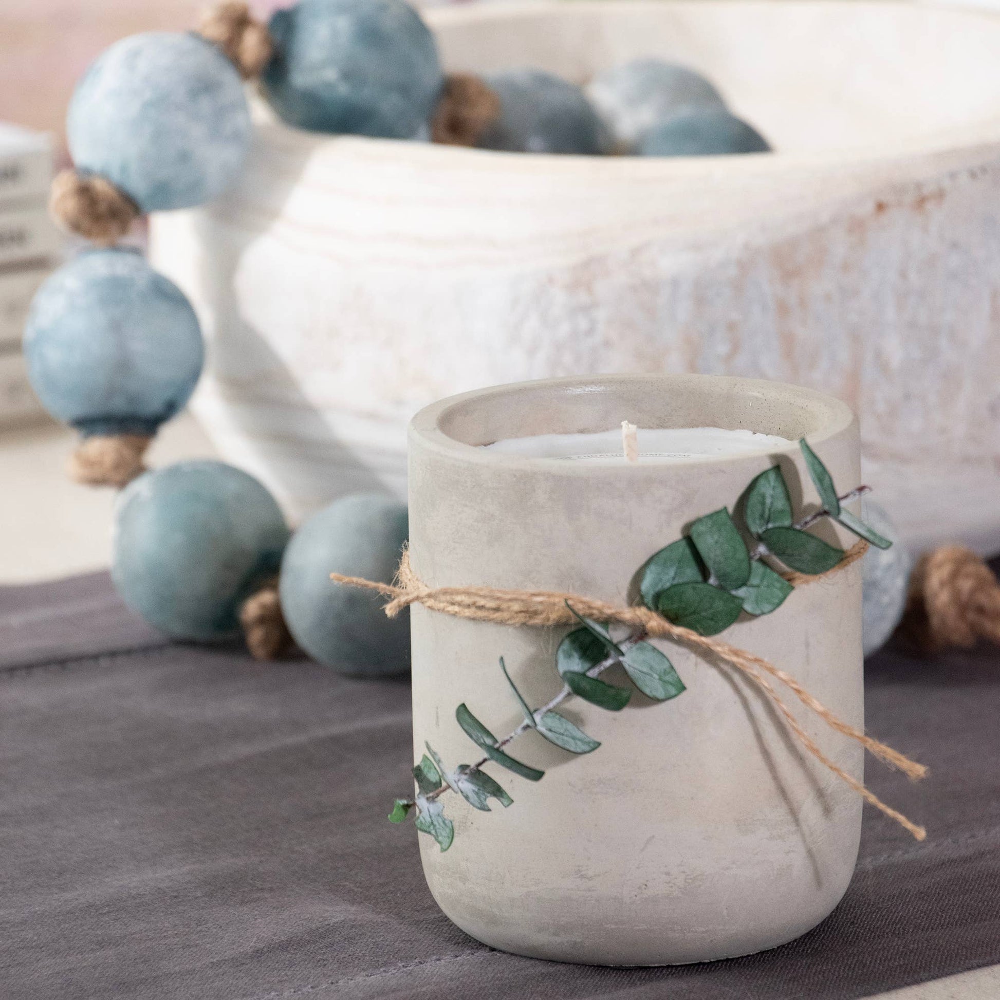 Both rustic and refined, our new collection of handmade cement candles are the perfect compliment to your space. Enjoy the fresh and earthy scents in this collection, and reuse the cement cup once the candle is finished. Each candle cup has a natural botanical flourish tied by hand.