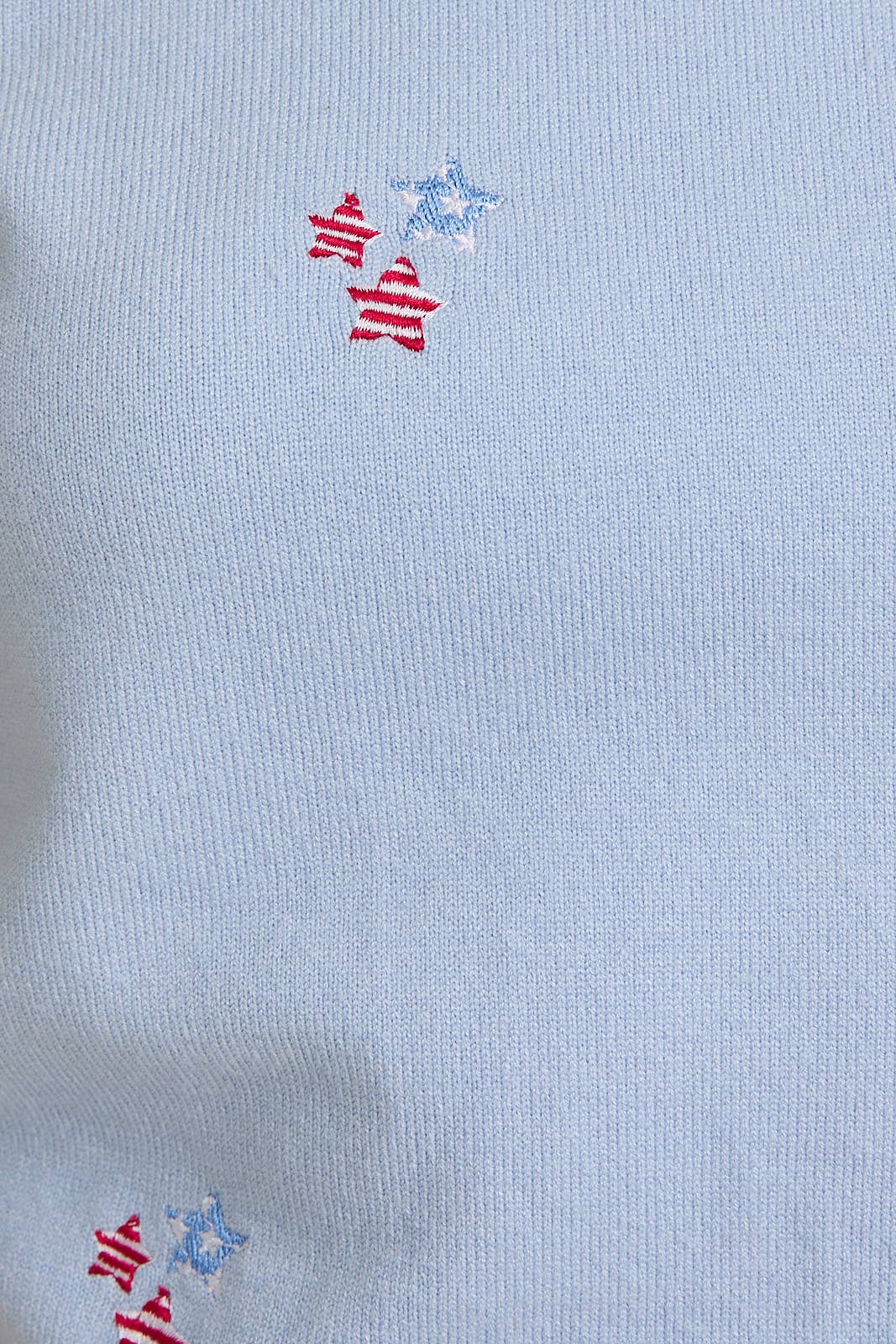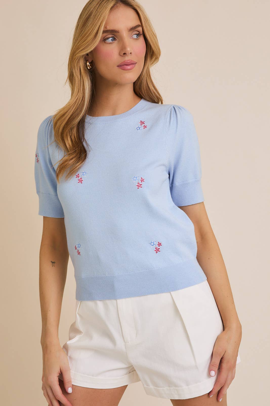 ROUND NECK PUFF SLEEVE STAR EMBROIDERED KNIT TOP
