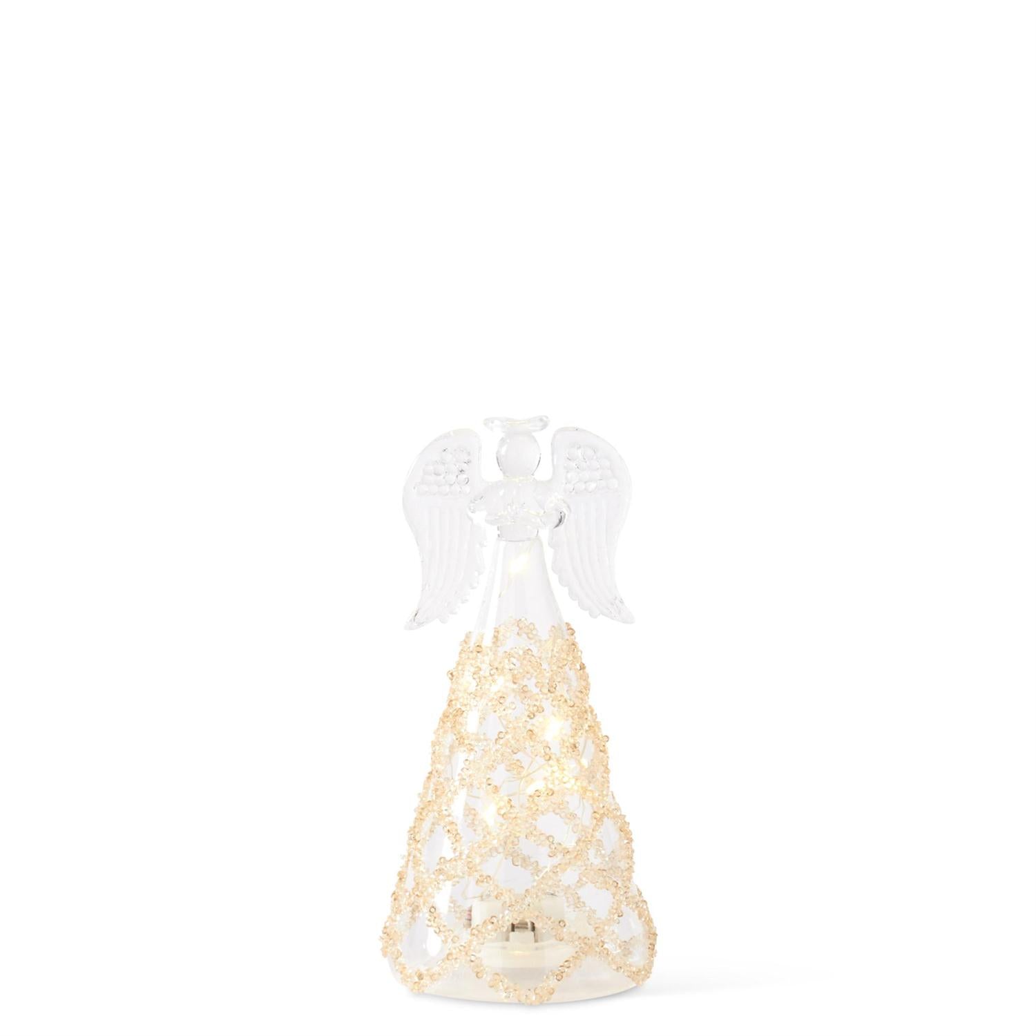 Set of 3 Glass Lattice Gold Bead LED Tall Angels w/ Timer