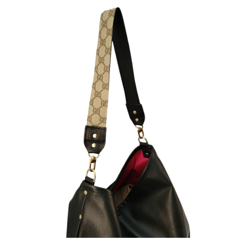 Upgrade your accessory collection with the Sheila Gucci Leather Handbag—a luxurious blend of style, functionality, and sustainability. Crafted from premium leather and authentic upcycled Gucci material, this slouchy, large everyday bag is perfect for the modern woman who values elegance and eco-conscious fashion.