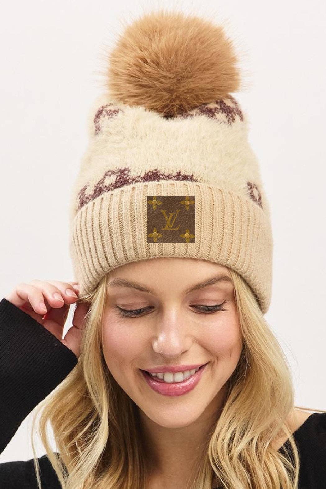 Stay warm and playful with the Upcycled Fuzzy Abstract Plaid Beanie! This cozy hat features a soft, fuzzy interior made from a comfy 50% acrylic and 50% spandex blend. The highlight is its cuff adorned with upcycled Louis Vuitton plaid materials, carefully adhered and riveted for extra charm.