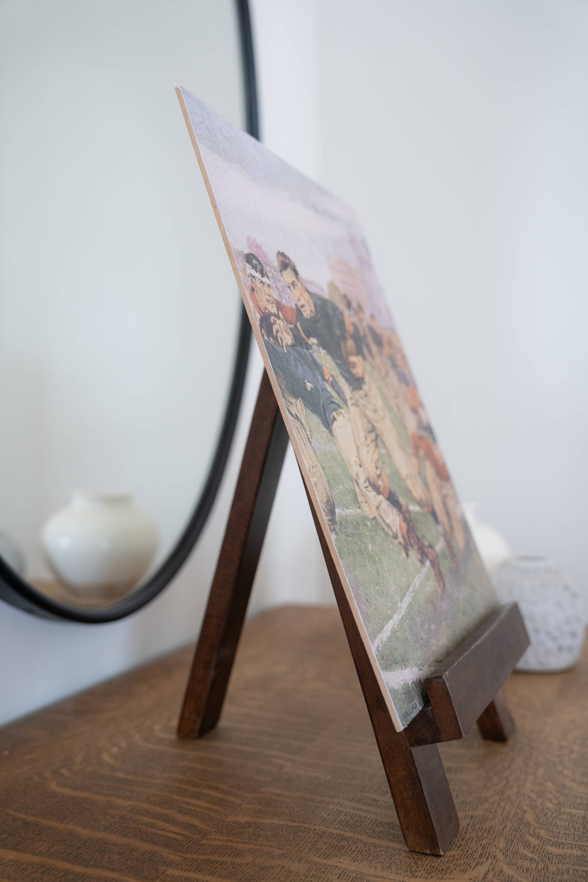 Vintage Football Player antique artist board is printed on quality canvas, giving it a lasting finish, then applied to hardboard. A beautiful, versatile product that can be placed on an easel, a shelf, or placed in your own frame! This is an authentic reproduction of the original artwork.
