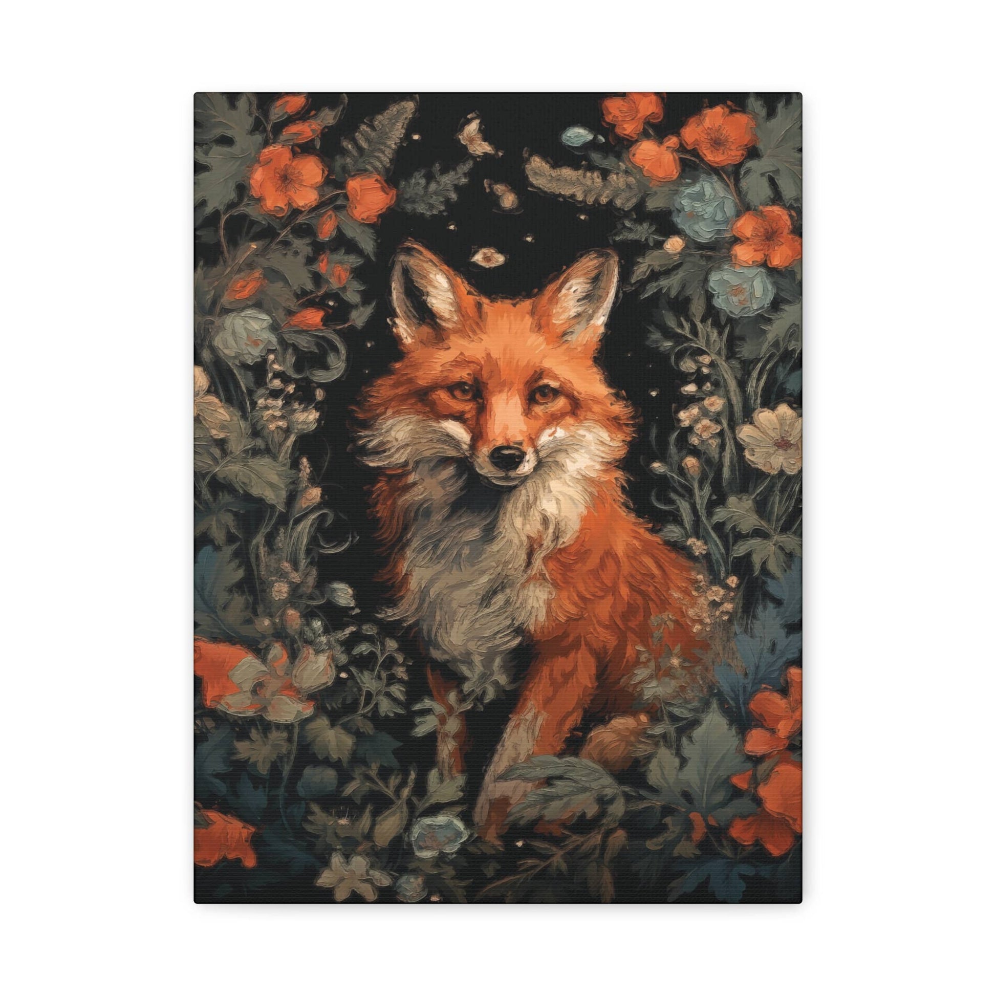 Add a touch of nature and whimsy to your home with this beautifully detailed fox canvas art. Featuring two stunning fox portraits, surrounded by rich foliage and soft florals, these pieces capture the grace and mystery of these beloved creatures. The dark, moody backdrop enhances the vibrant orange and white fur, creating a captivating focal point for any room.