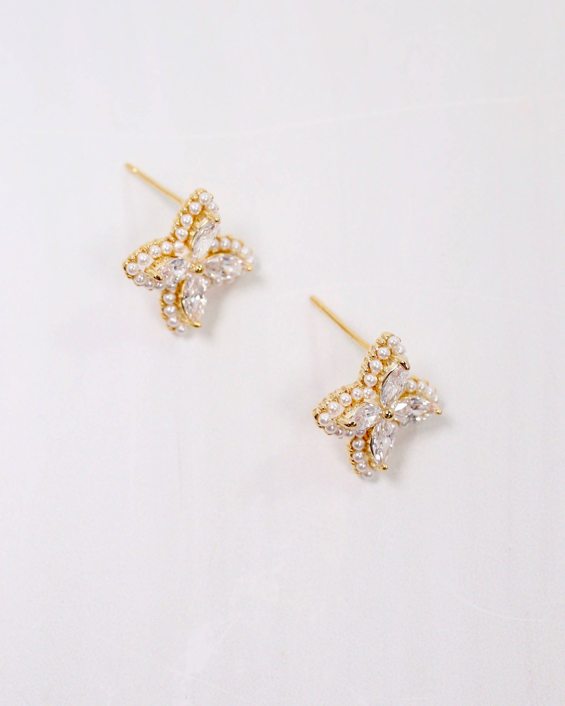 Elevate your style with the Westminster Crystal Stud Gold earrings. These gold-dipped clover studs feature a dazzling CZ pave finish, adding a touch of sparkle and sophistication to any outfit. Perfect for both everyday wear and special occasions.