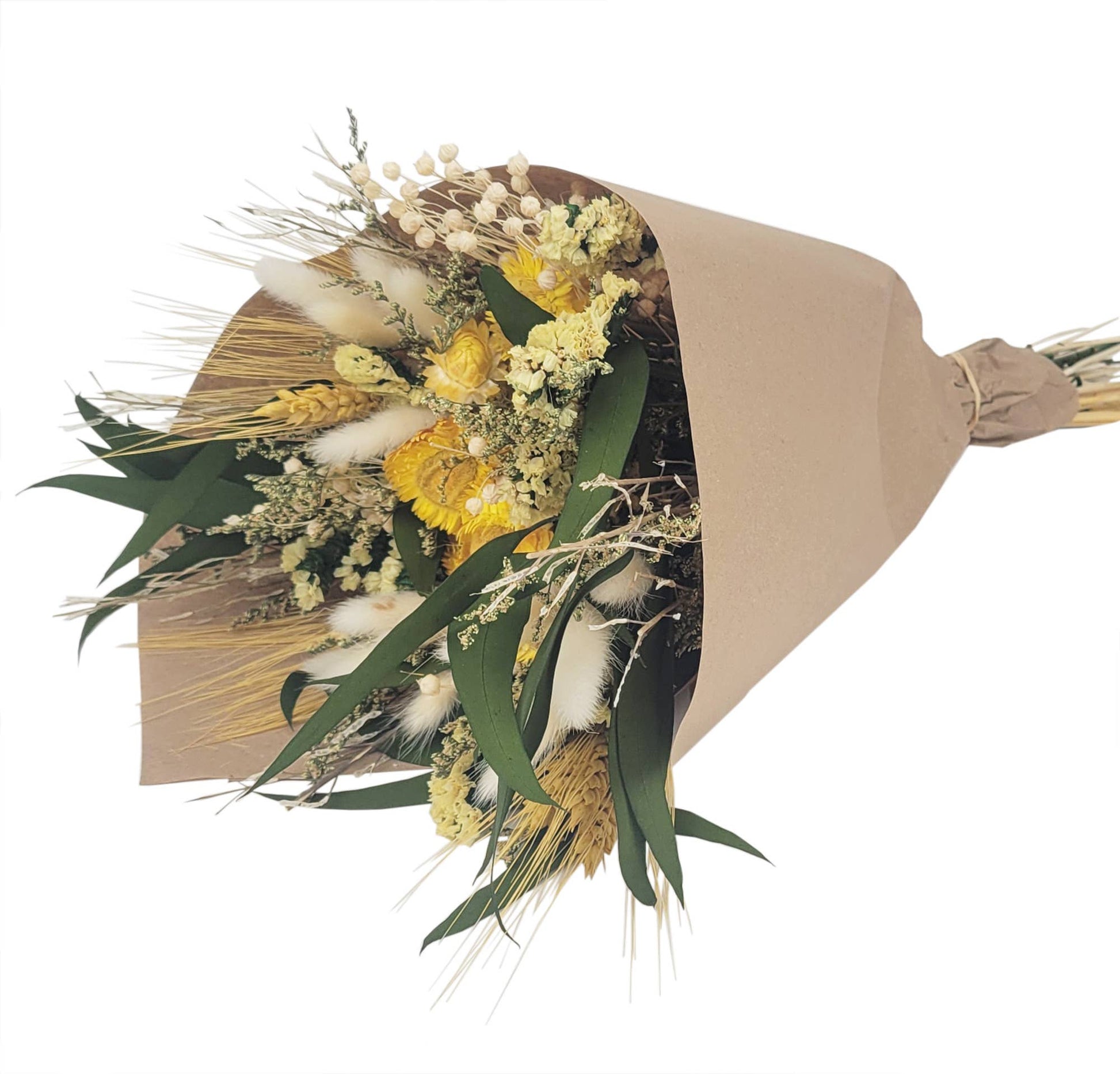 Our floral team designed this beautiful bouquet using an assortment of yellow dried flowers to create this delicate and romantic bouquet arrangement. Each bouquet is designed and handcrafted in our California design studio.